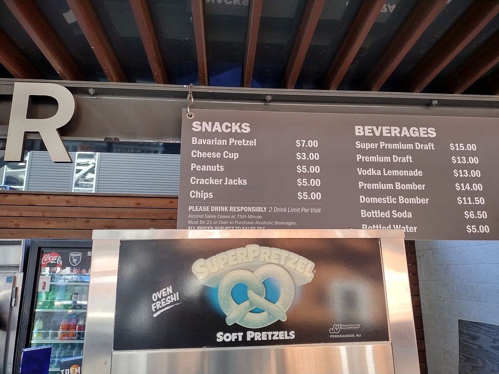$7 pretzels, $5 peanuts/chips