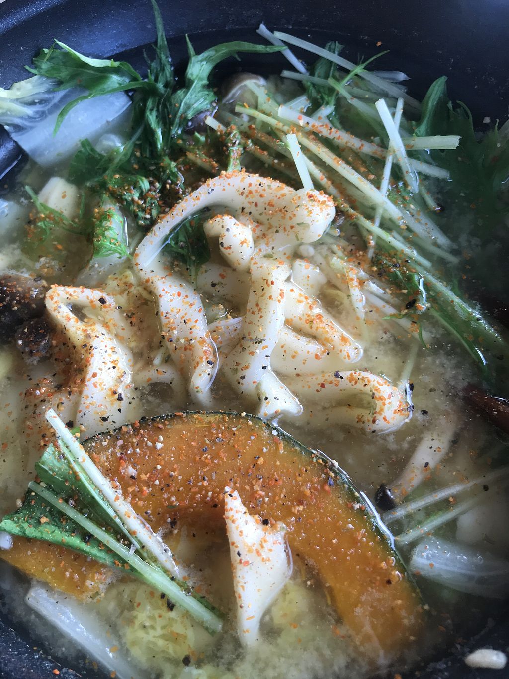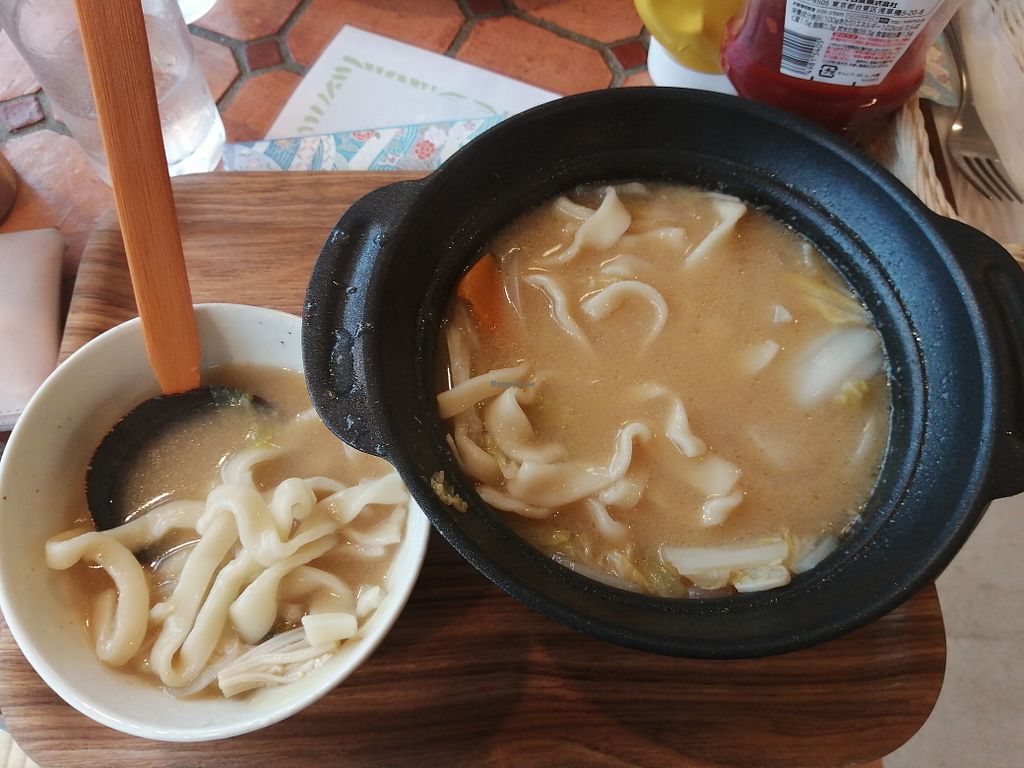 店內提供由味增製作出的野菜鍋及掛麵(類似烏龍麵),僅含有一點洋蔥及少許的蜂蜜,老闆也可以客製化將及去除,味道也很好唷。
