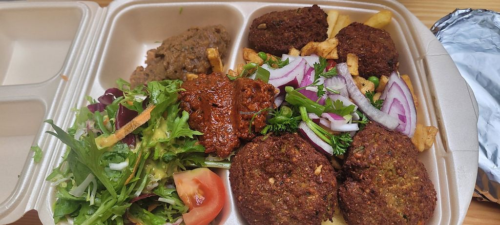 Hervorragende Falafel, leckerer veganer Teller.
