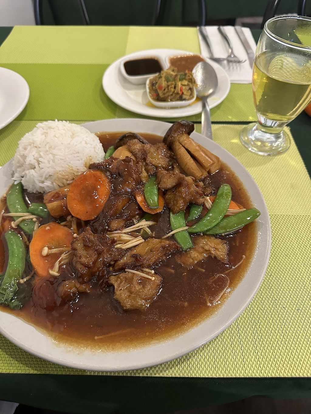 Ordered oyster mushroom rice and it came with a soup and a mandarin or…