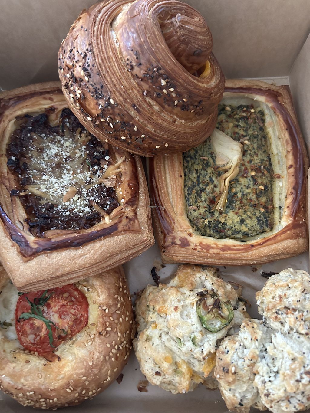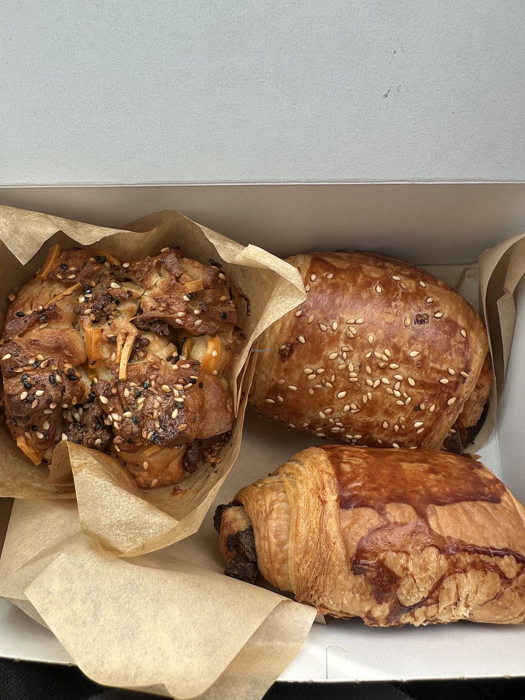 Kouign amann, pepperoni pizza roll, pain Au chocolat