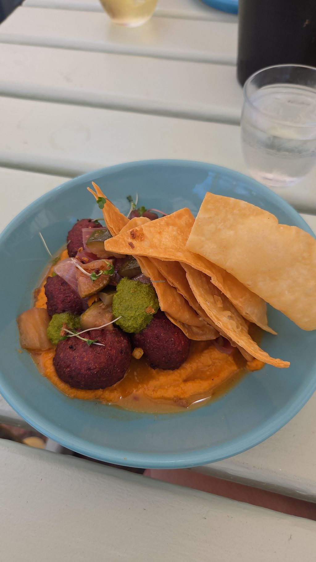 Lovely restaurant near the sea. Many vegan options. I ordered the falafel tostada. It was okay. A bit on the oily side for me personally. Would like to try their vegan meatball pasta dish. Wasn’t hungry enough for that though.