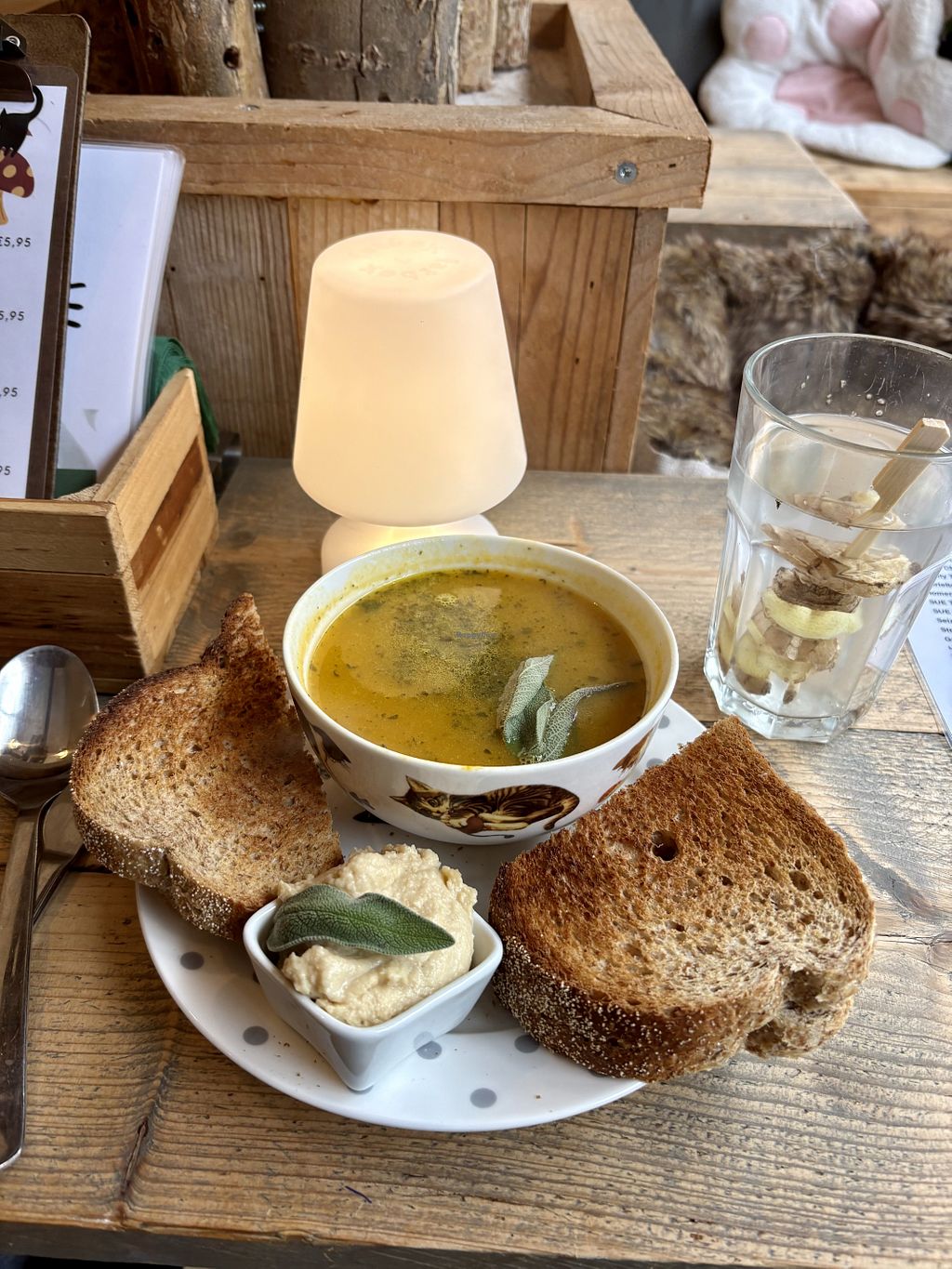 Soep met broodje hummus