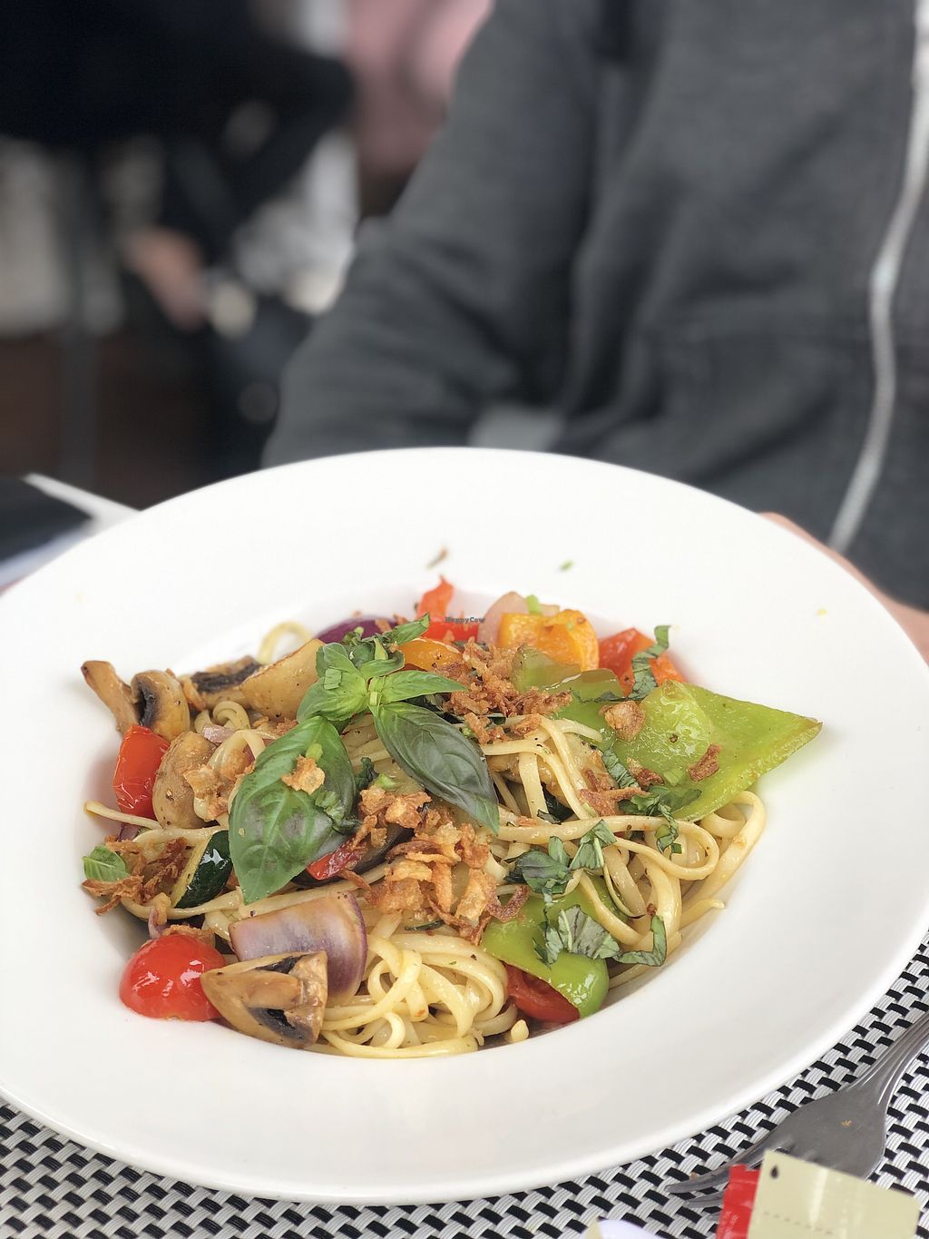 Serves meat, vegan options available. Beach-side restaurant with two vegetable based dishes: tofu with tabbouleh and mix veggies, and linguine with veggies. Specify vegan. Reported closed, May 2019.