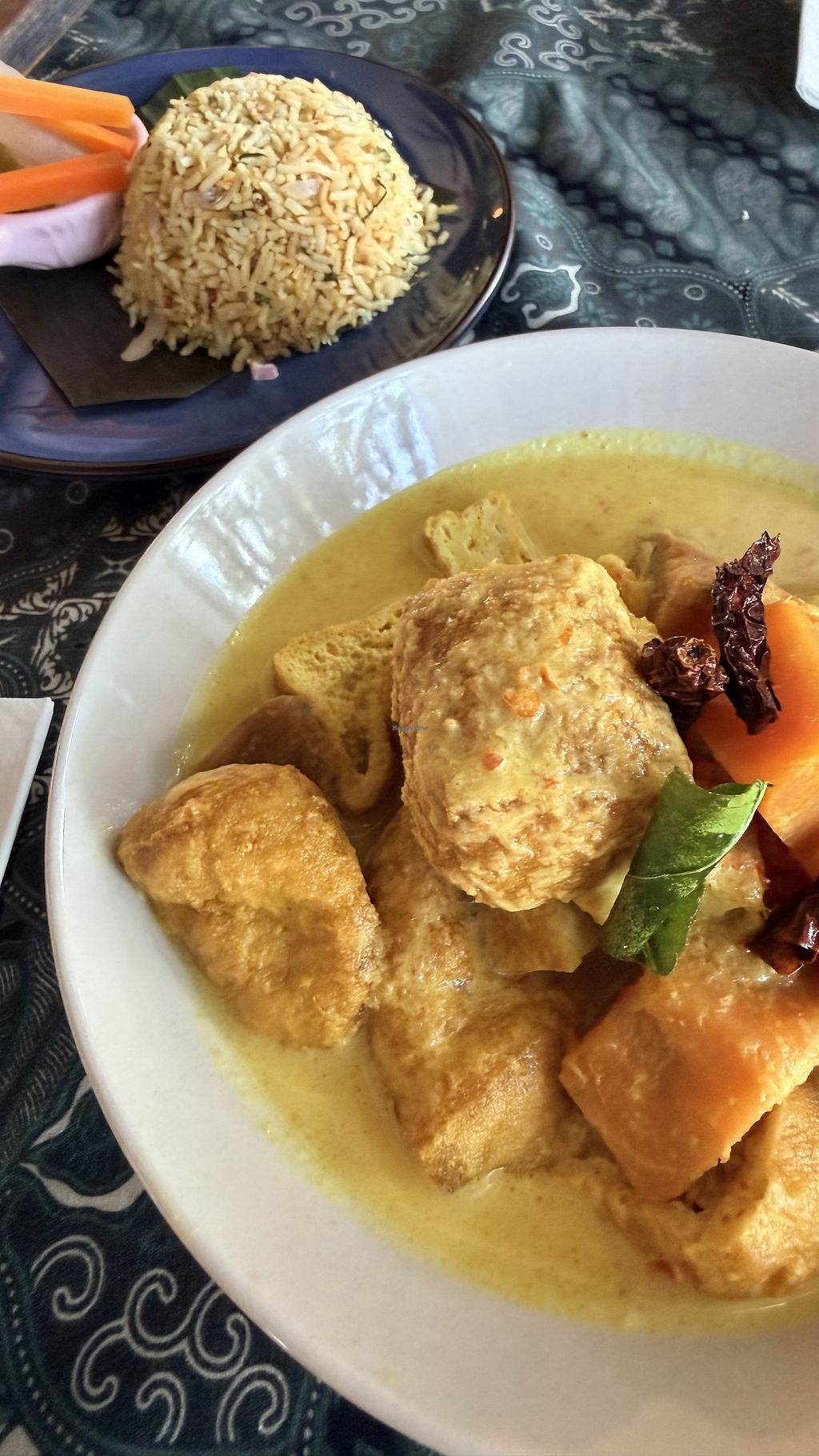 Mushroom and tempeh rendang (back), pineapple/sweet potato curry (whic…