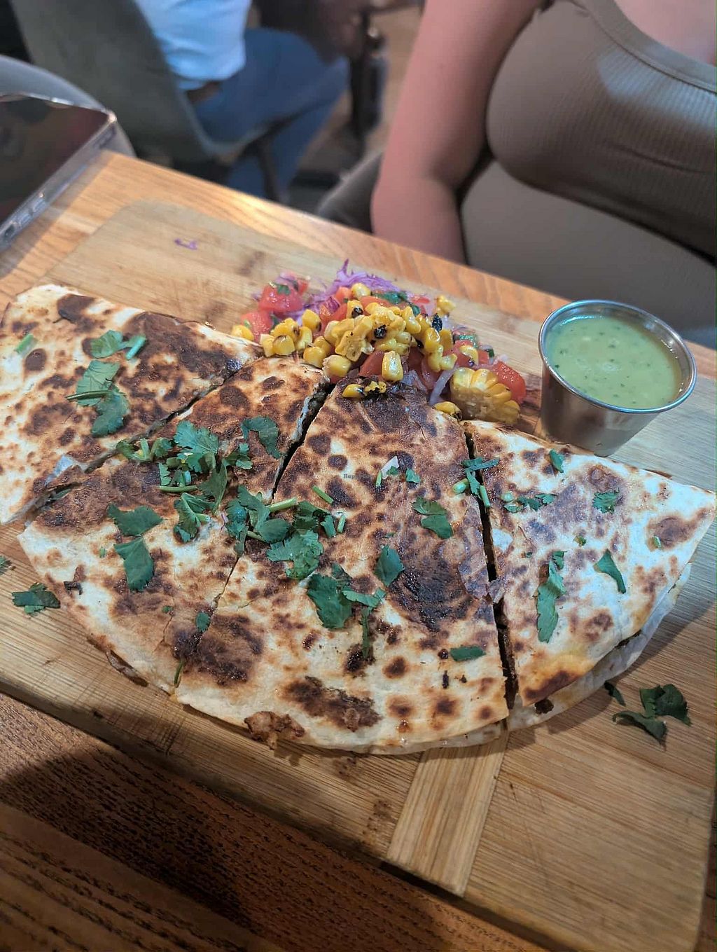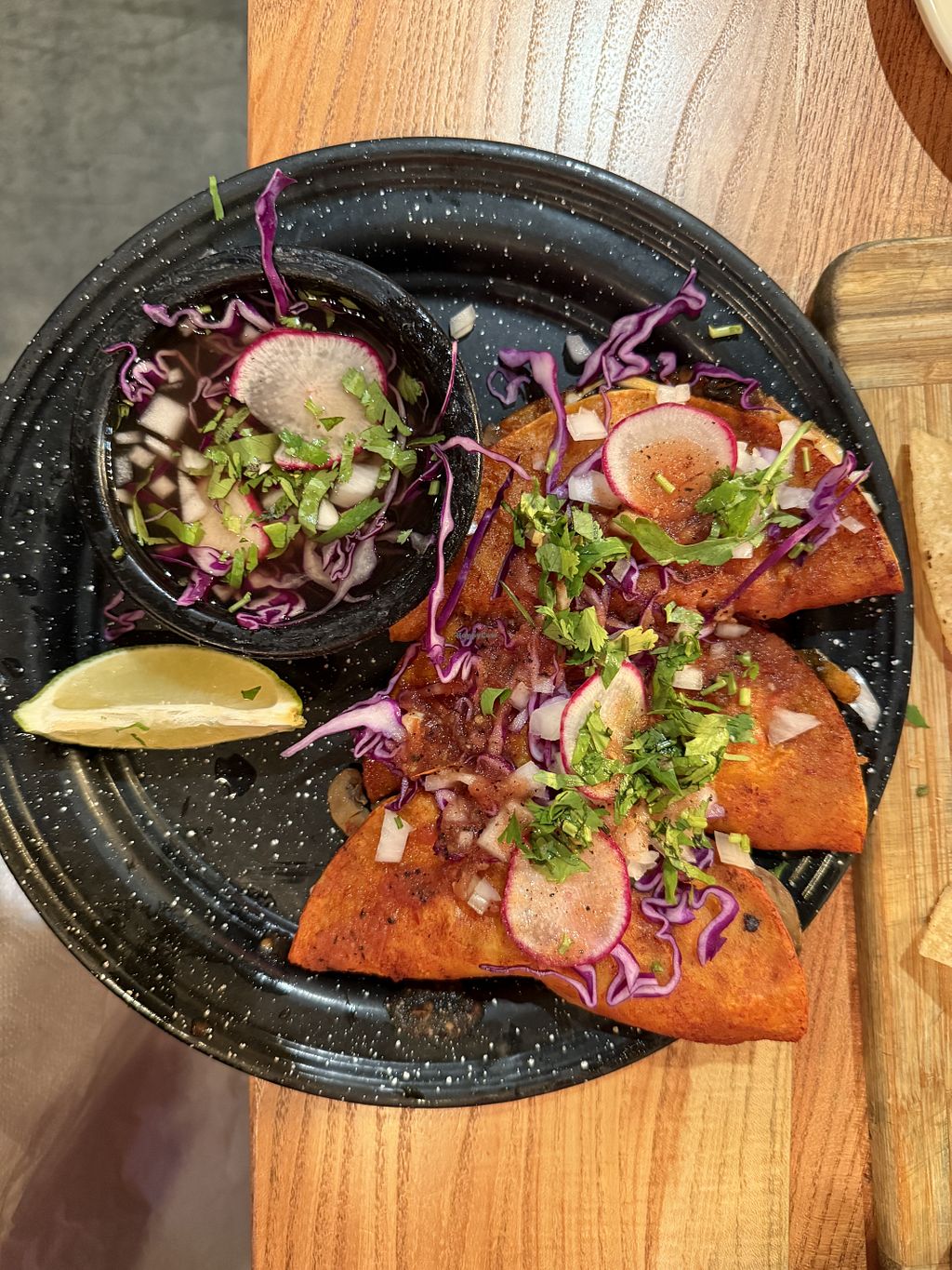 Exceptional vegan Mexican restaurant. My friend and I got the quesabirrias and a taco dinner and it was all delicious. Tacos were quite filled to the top, which I appreciated because they were so good! Staff is friendly and will help you order if you’re unsure.