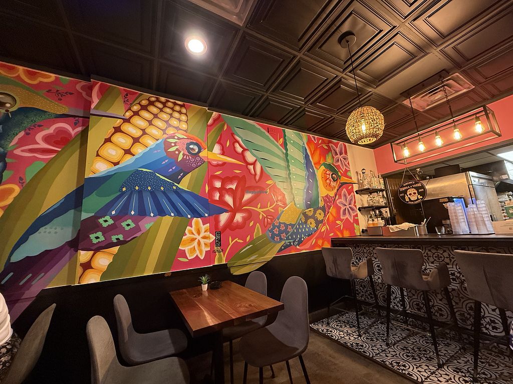 The murals throughout the restaurant are beautiful, and they play a mixture of Hispanic and American pop music. We went around 4:00pm on a Wednesday and we were the only people in there for a while, but as soon as we were leaving, the place filled up immediately! Parking is not terrible, there is street parking with a limit of 2 hours which costs about $10. They have one gender neutral bathroom in the back which is very clean.