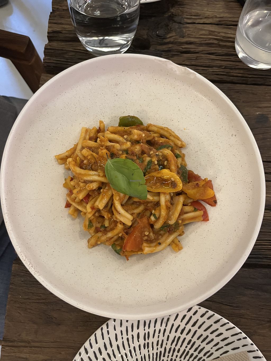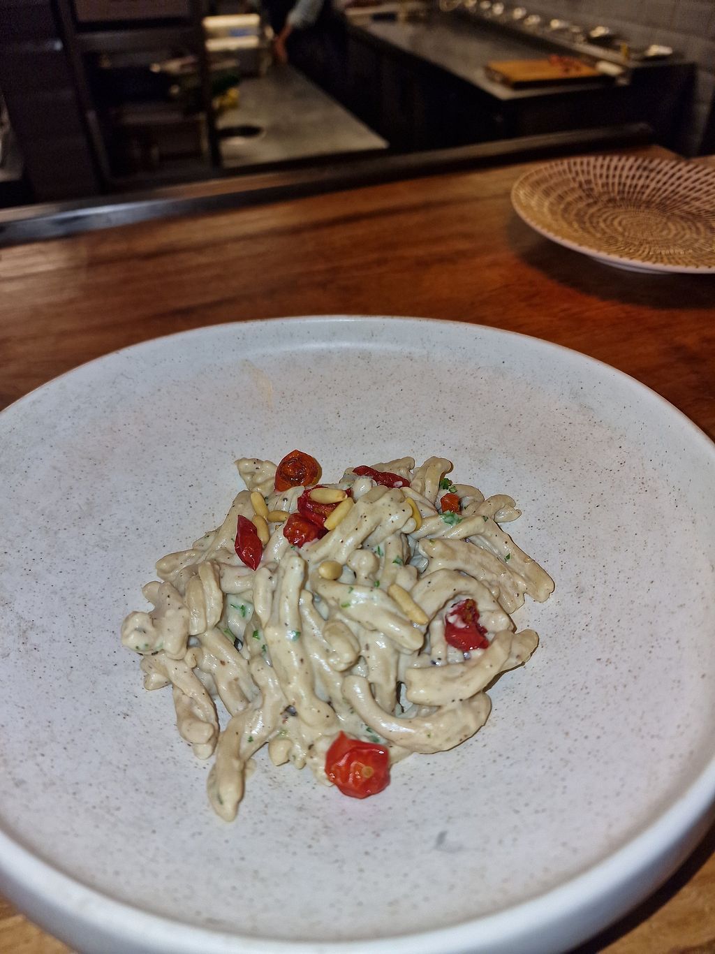 Located in an outside designer mall, with valet parking. The restaurant has a great decor and very rustic modern look. We were greeted as we entered and given a. Nice table in the center. We arrived a bit late for lunch due to traffic and the place was quite busy. We ordered drinks, shared a mushroom toast and then I had a pizza and my colleague had a spicy pasta. We then each had the chocolate pie with some ice cream. Overall great food, great service . A bit on the pricey side for Delhi, but I think it was worth it and I will go back.
