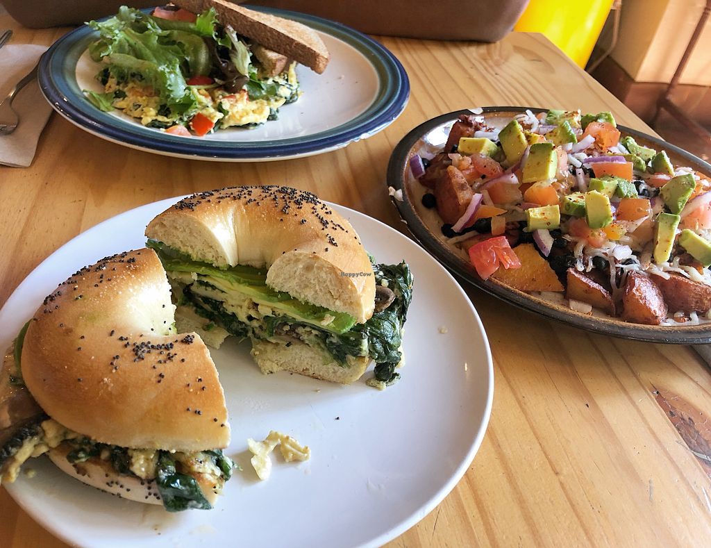 So happy to see a separate Vegan menu. I had the mushroom spinach bagel and my boyfriend had the soyrizzo burrito. Both options were super tasty and we would come back if we were in the area again.