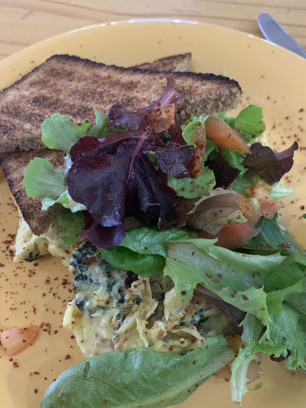 The vegan farmers omelette is bomb! Very wholesome full of veggies, side salad and toast.