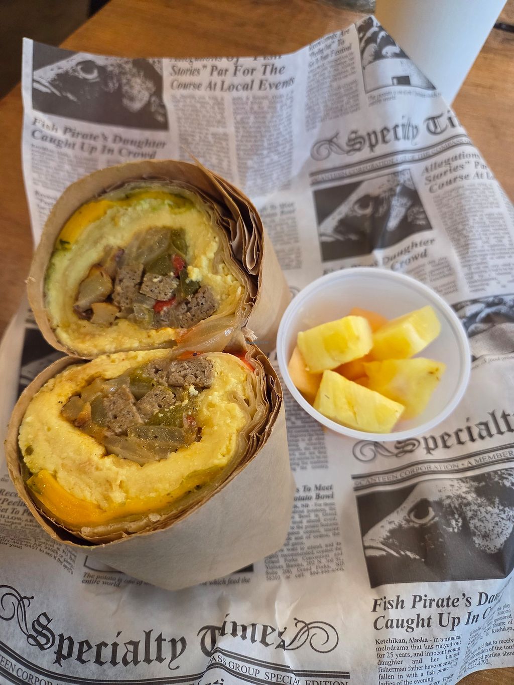 Vegan breakfast sandwich with impossible burger, just egg, and vegan c…