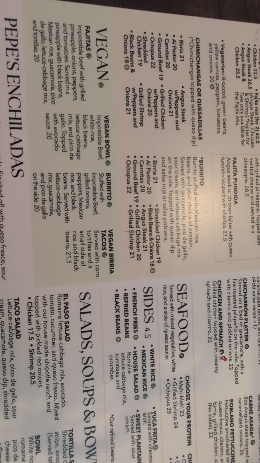 Vegan menu