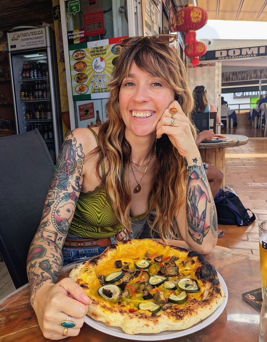 The vegan pizza was simple but SO delicious. Perfect, fresh, crisp dough, pumpkin sauce with aubergine and courgette.
