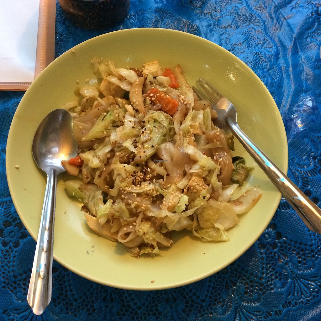 Had the breakfast set A, vegan omelette with 2 toasted slices of whole-wheat bread, jam, vegan butter and some salad. For an additional 10 baht I was able to exchange the coffee for Thai coconutmilk iced tea. Altogether I payed 100 baht. The staff was extremely friendly and the food was divine. They even gave me some extra tea to fill up my glass as soon as some ice melted. May not be the fanciest looking place, but it sure was one of the best breakfast I had so far.