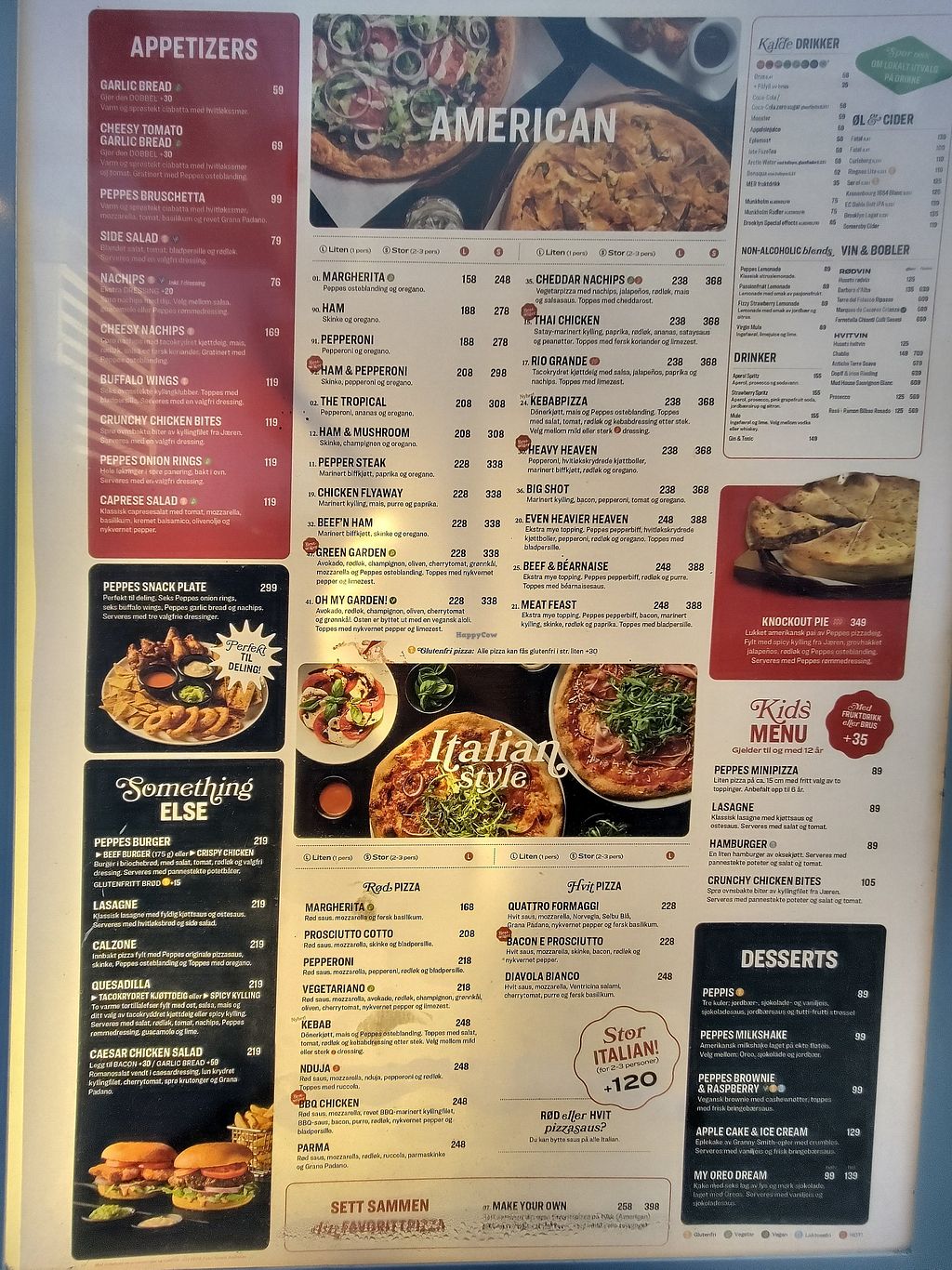 Serves meat, vegan options available. Norwegian restaurant chain offering vegan pizza as well as vegan aioli, a burger, and salad. Open Mon-Thu 1:00pm-11:00pm, Fri-Sat 11:00am-11:00pm, Sun 1:00pm-11:00pm.