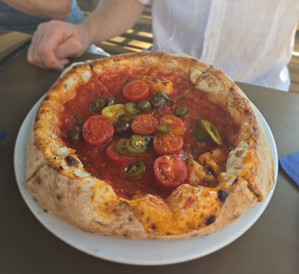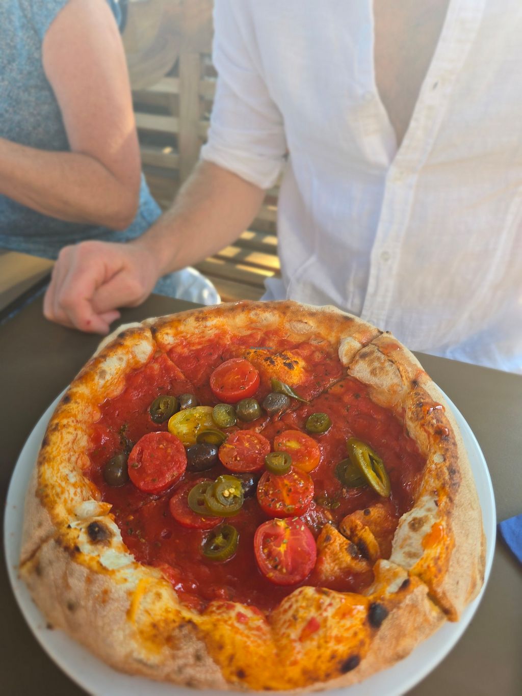 This place had everything. We were welcomed as vegan eaters and encouraged to order. The waiter was incredibly friendly, hospitable and clearly passionate about everything the restaurant had to offer. They offered adaptions on the salads and pizzas. The dough, marinara and tomatoes had excellent flavour,so for us we did not need anything else. I rarely return to somewhere whilst on holiday but we came back and had a salad pizza and focaccia- again service, food and setting was all perfect.