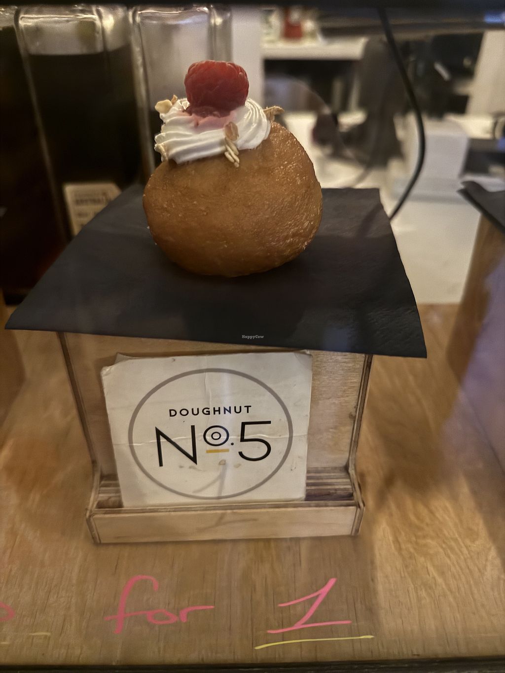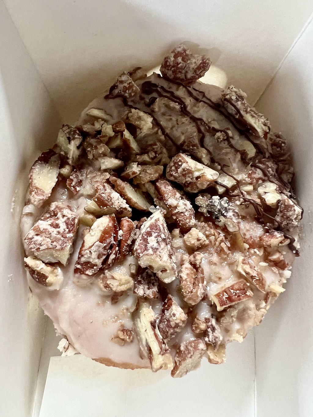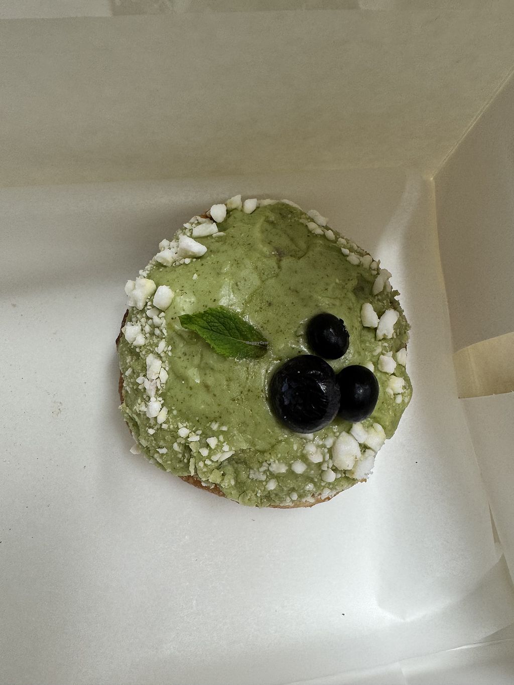 May’s vegan doughnuts: a peachy one and a chocolate one