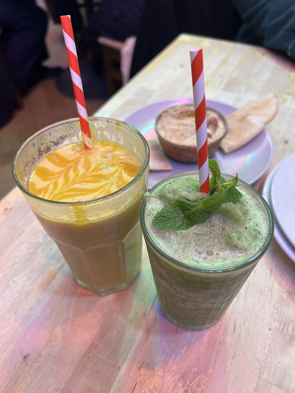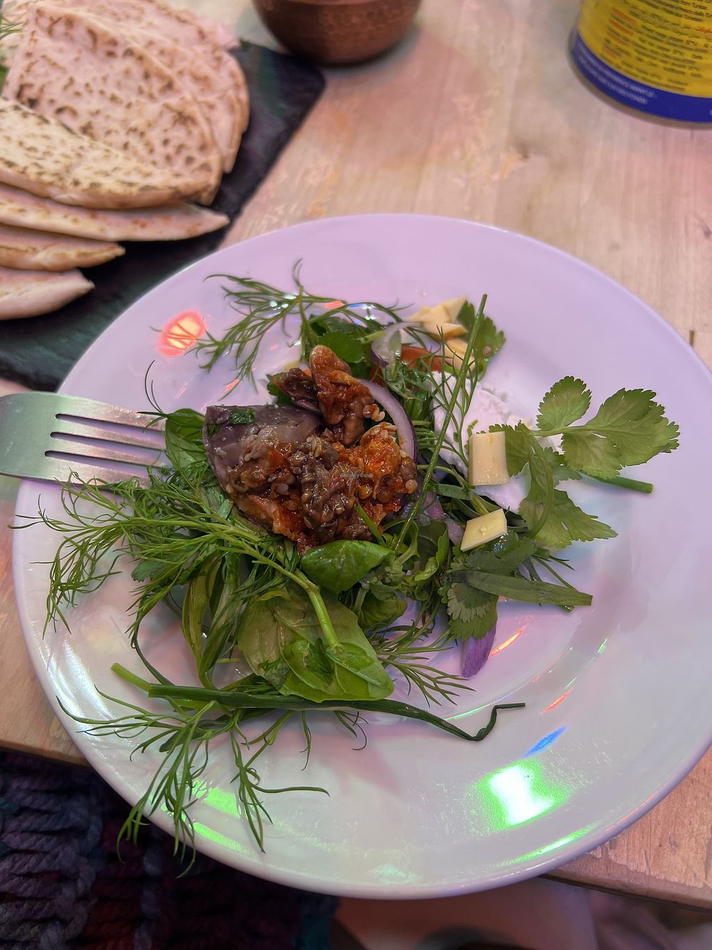 Cucumber yogurt, baba ghanoush, hummus, falafel and sweet potato falafโฆ