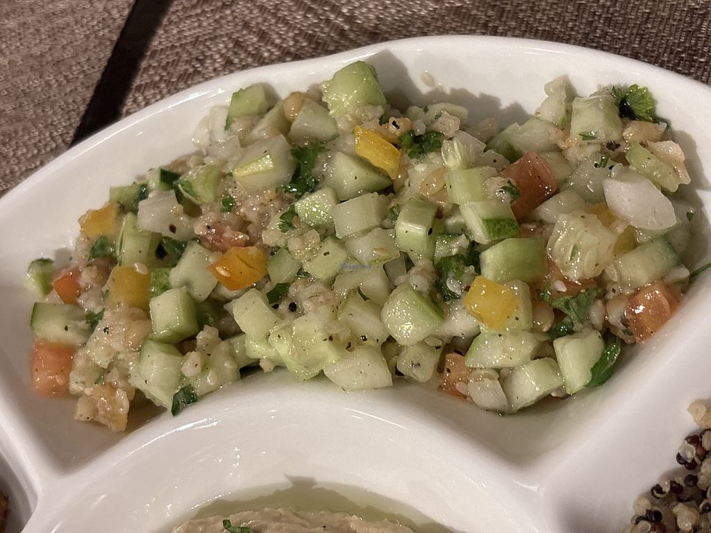 I got the hummus plate and tabbouleh salad. The hummus was good but not the best I've had. The pita that came out with it was warm, which was nice, and they provided you with a small key lime to juice over the hummus. This really enhanced the flavor. Unfortunately I was quite disappointed with the tabbouleh. It was a little warm and primarily cucumber. It lacked flavor and I only ate it so as not to waste food. Note that it was a rather large portion.