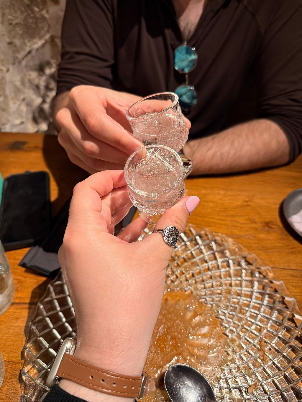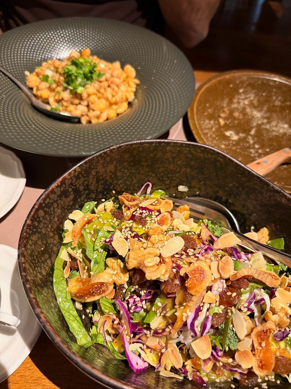 Foreground: Vegetarian Salad (contained honey) Background: "Palikar…
