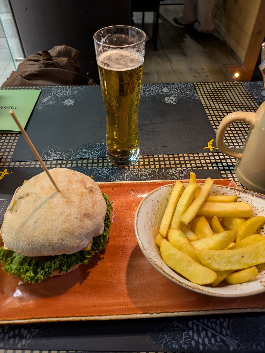 Pretty large place with an upbeat vibe. I wanted the Vacon burger, but there was no vegan bacon. I had the Fliegender holländer instead, with Sauerteig. It was tasty. The fries were pretty boring. The service was good. I liked the story telling in the bathroom.