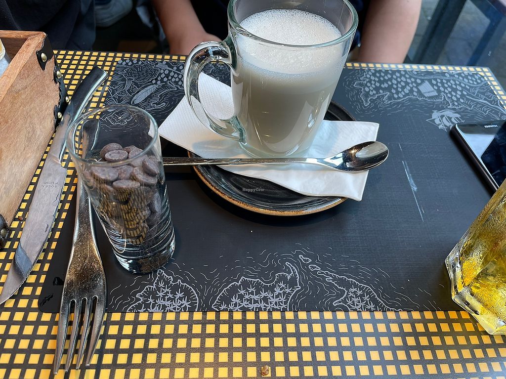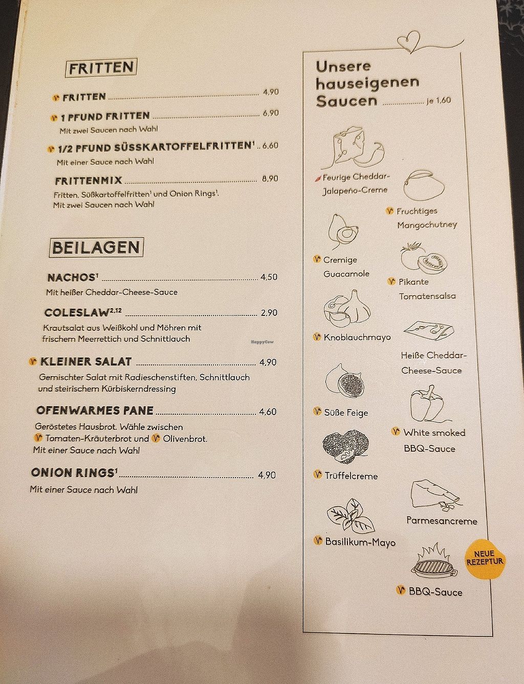 It is a non-vegan restaurant, however one can find many vegan vegan options, that are all marked with a yellow symbol on the menu. There are several vegan burgers, 2 types of vegan bun, vegan side dishes and vegan sauces. The sauces which are already available on the table are also vegan. They also have vegan desserts and a vegan hot chocolate, as well as vegan ice cream!