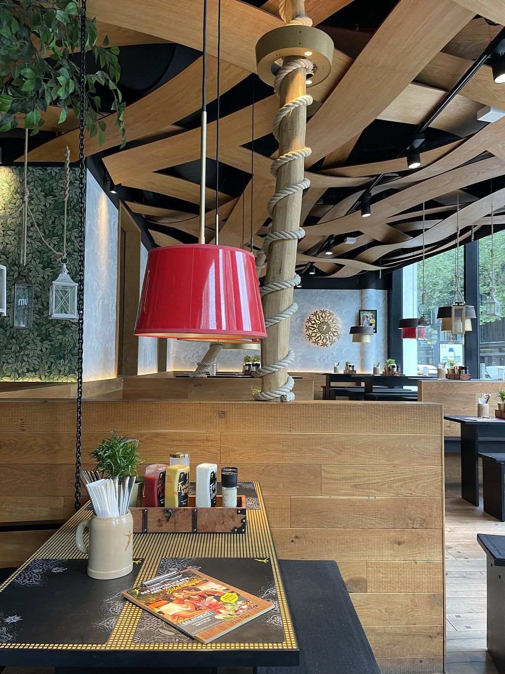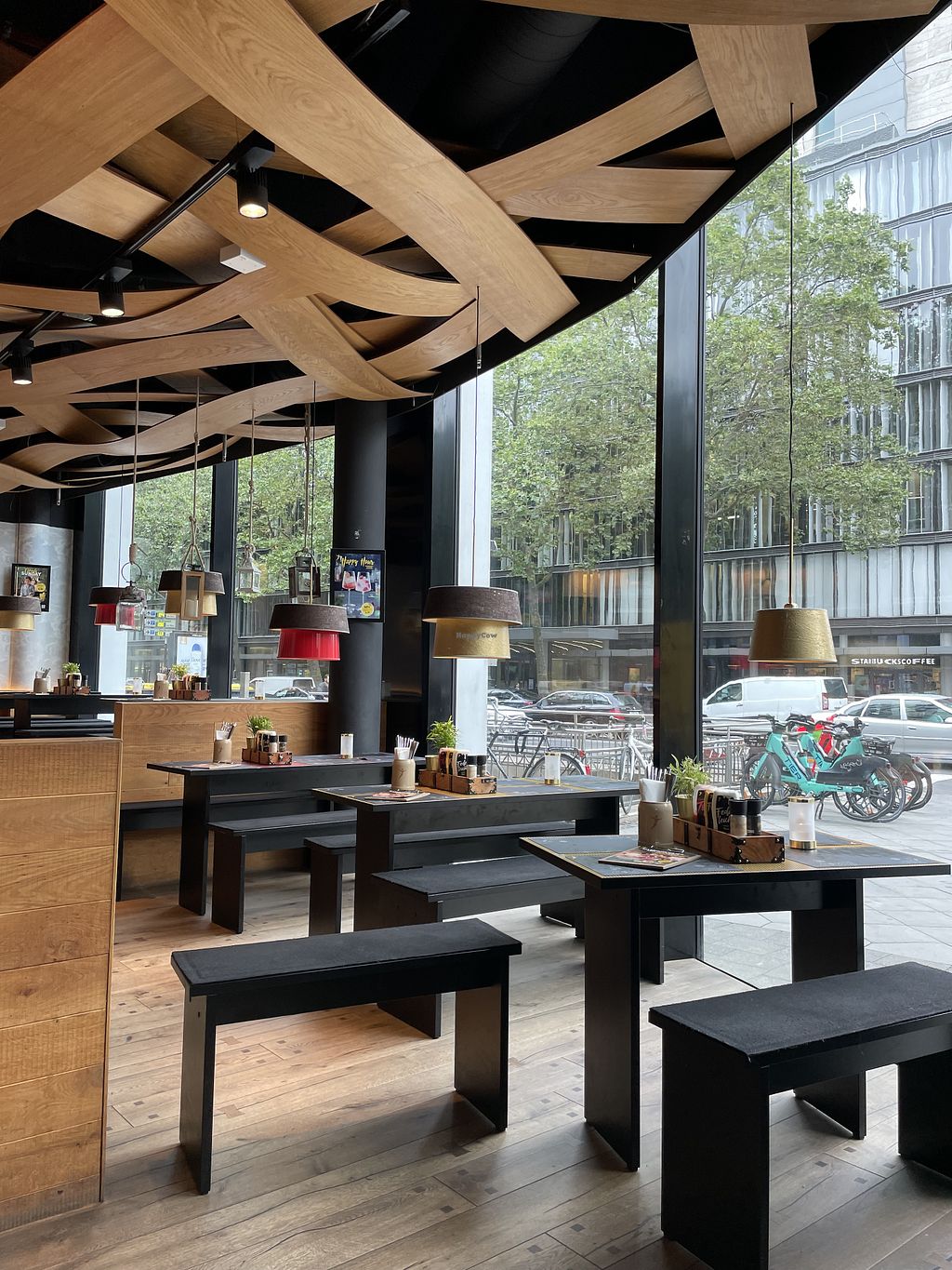 I like the interior design (similar to another chain), menu options (if you’re into that) and service is friendly. The drink I ordered was supposed to be a highball / cocktail but came in a ugly glass. My Burger was warm, the schnitzel patty had a odd taste was just something pressed/mashed (can’t recommend- but at least the Guacamole on top was good). I think every Schnitzel you buy in a supermarket is more tasty!