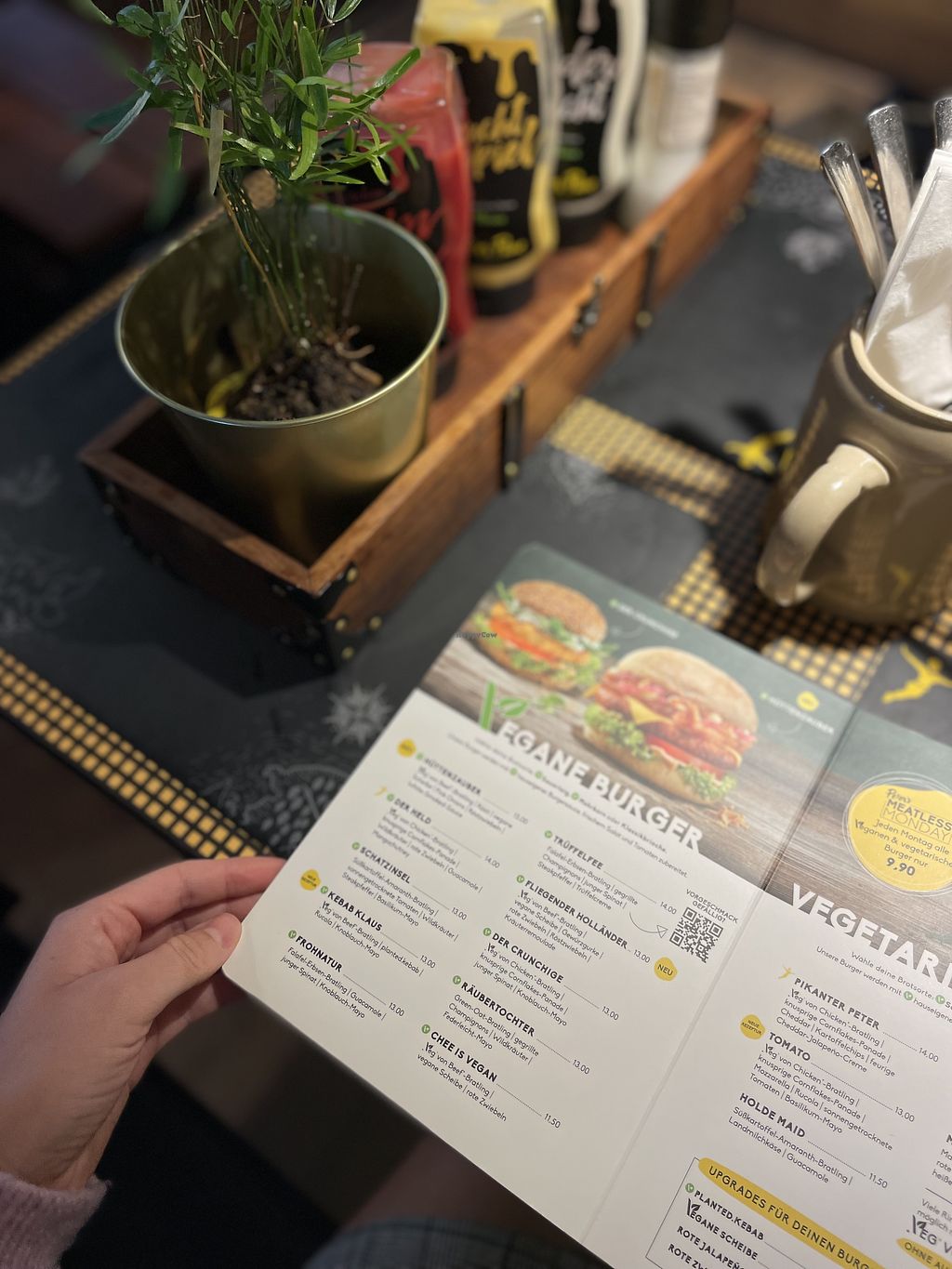 The selfmade lemonade was fantastic. Same for the ice tea. I had the kebab (kebab klaus) burger and my company the chickenlike burger (der Held). Only bad thing was the vegan hot chocolate. One of my companions didn’t like it, especially because you just have these chocolate drops you put into your milk. The fresh mint tea was great, I am just confused why someone served it with honey.