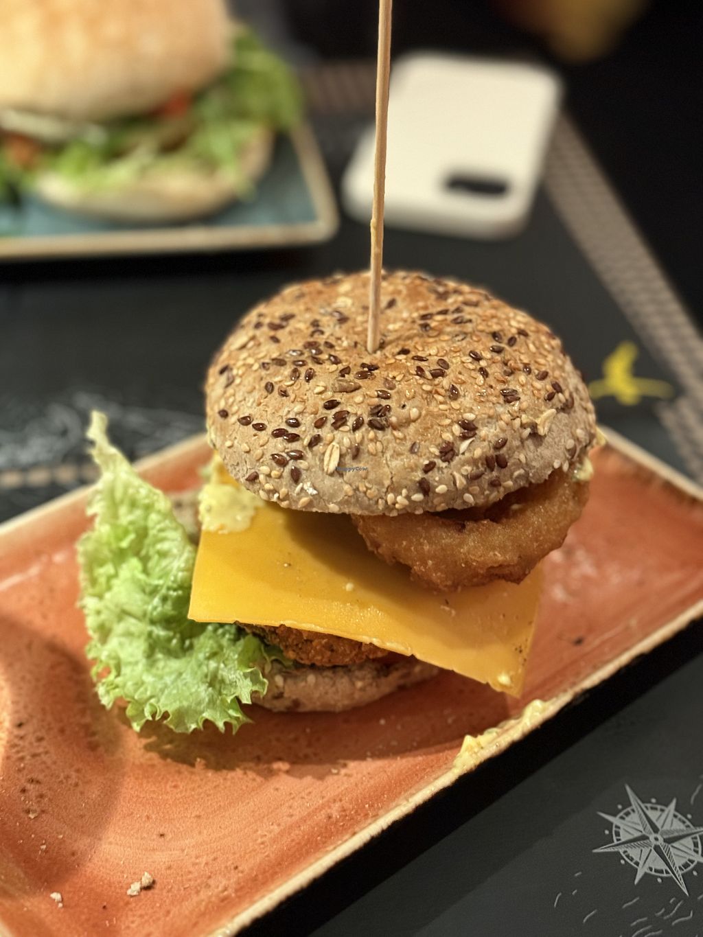 Schatzinsel mit Mehrkornbrötchen. Hinten 1Pfund Fritten