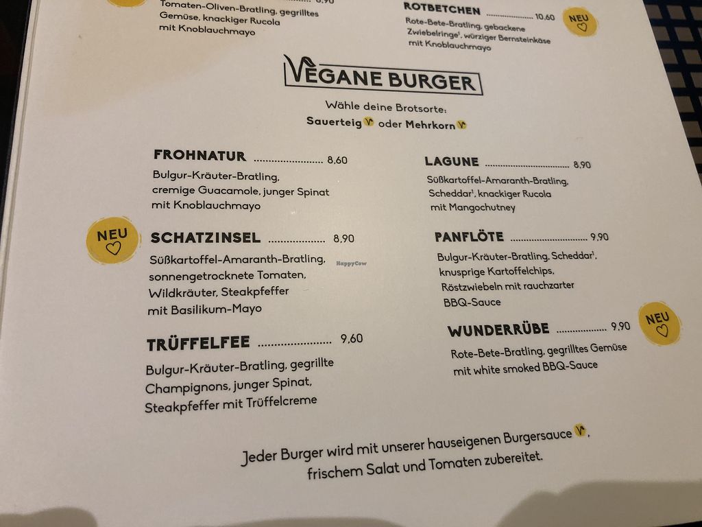 The regular prices of their burgers (they have around 5 different vegan patties and even more burger-variations) vary between 9,90€ and 12,90€.