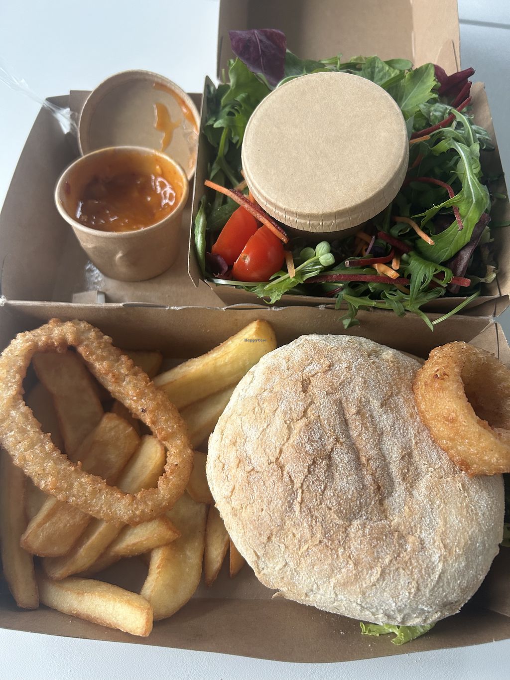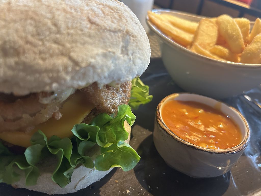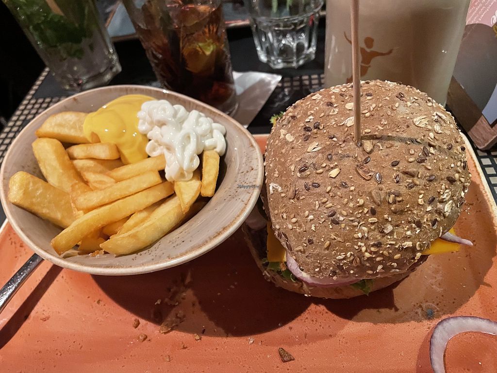 Read morePros: Different vegan burgers and sauces, Fries are vegan