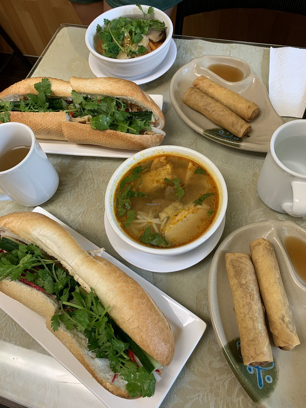 This tiny place has great and delicious vegan options. Very affordable as you can get a combo which includes spring rolls, soup and a bahn mi sandwich. So delicious!