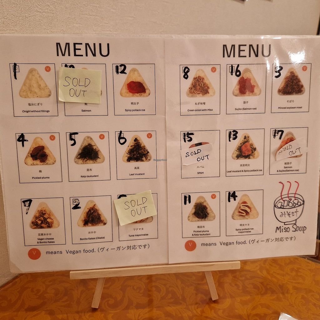 I checked this place on Google maps, which shows different opening times and risked going on a Friday morning. However other Saturdays they only serve Onigiri (rice balls) and they have many vegan options, but it's not all vegan.