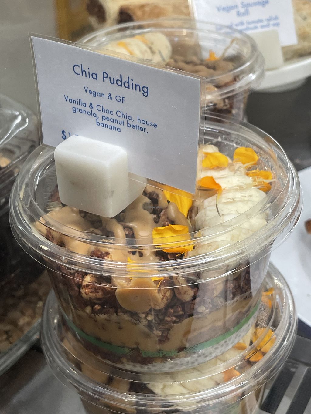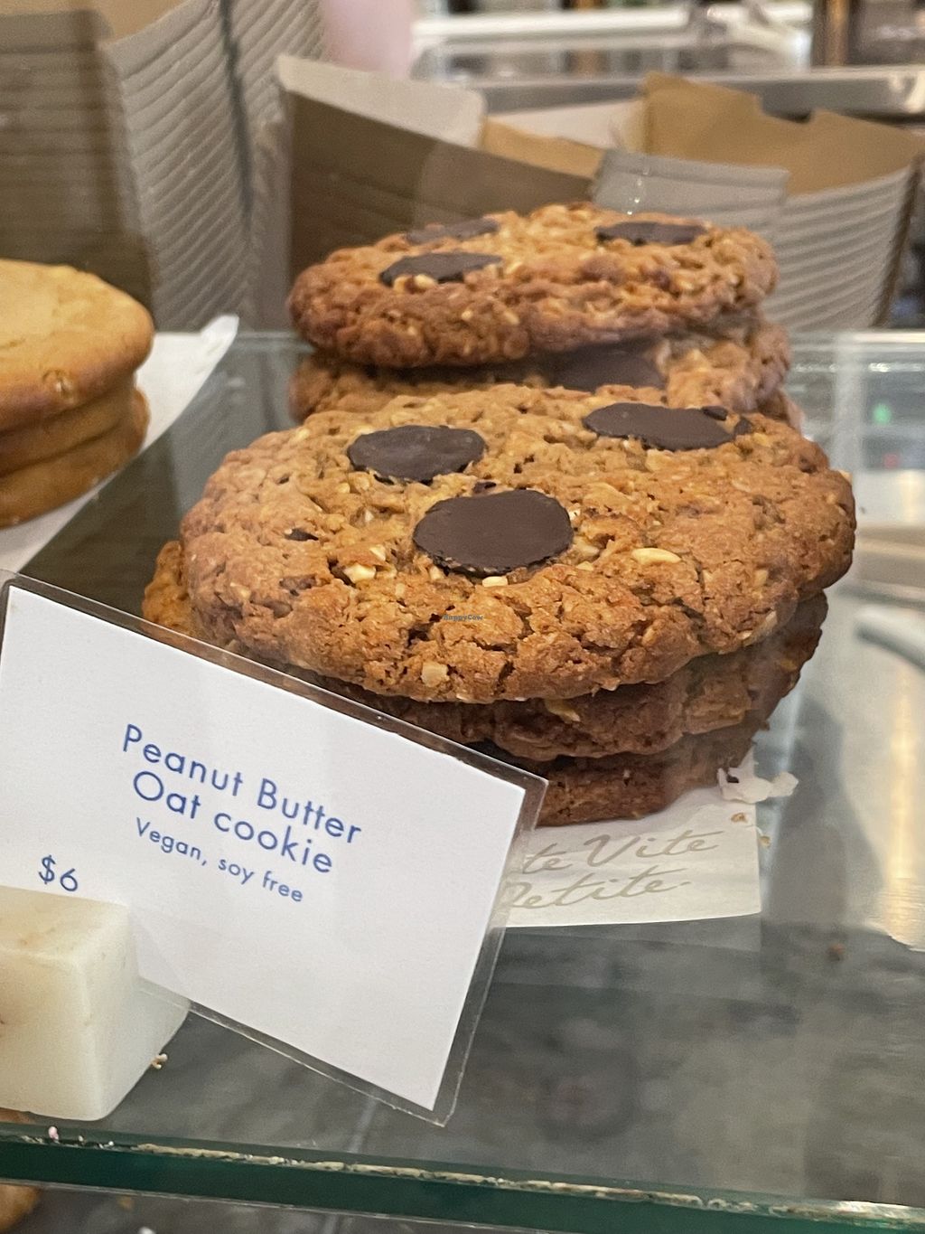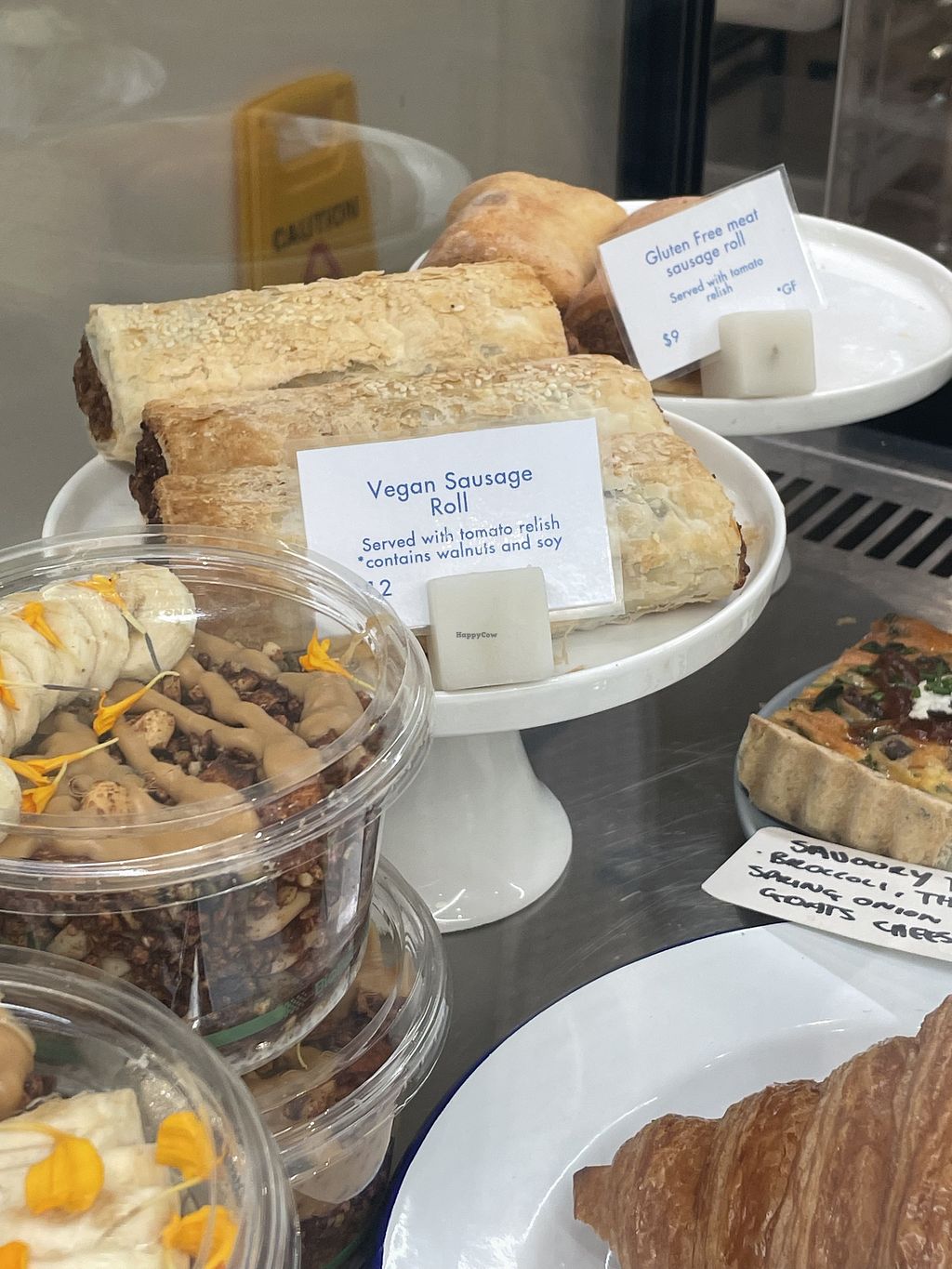 This takeout cafe has a fantastic spread of vegan options. Vegan sausage roll, toastie, and 2 salads for savoury, and 2 cookie types and a banana bread. Food tasted great. Super cute picnic sitting area directly outside.