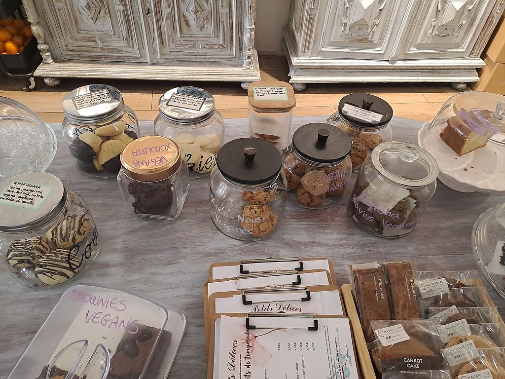 Diversas opciones veganas en el local, de galletas y pasteles. Todo super bueno