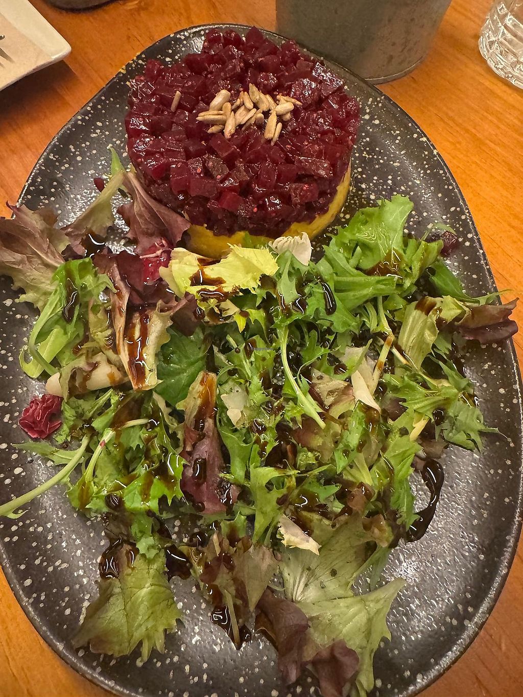 Ideal si vas con gente no vegana. Probé el tartar de remolacha y una ensalada.