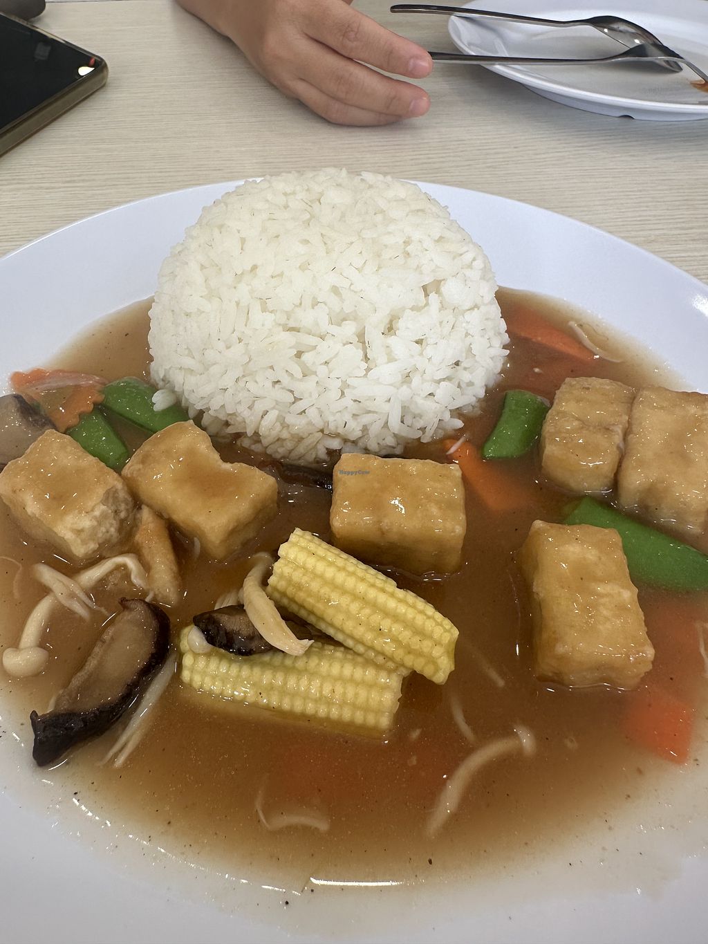 The overall vibe feels like everyone in the world is a vegan. Delicious food. Cheap prices. Outstanding service. I will never forget this veg restaurant. They do serve eggs for the fake vegetarian people. Must try this place. Noodles are great and also many rice dishes for 10ringit.