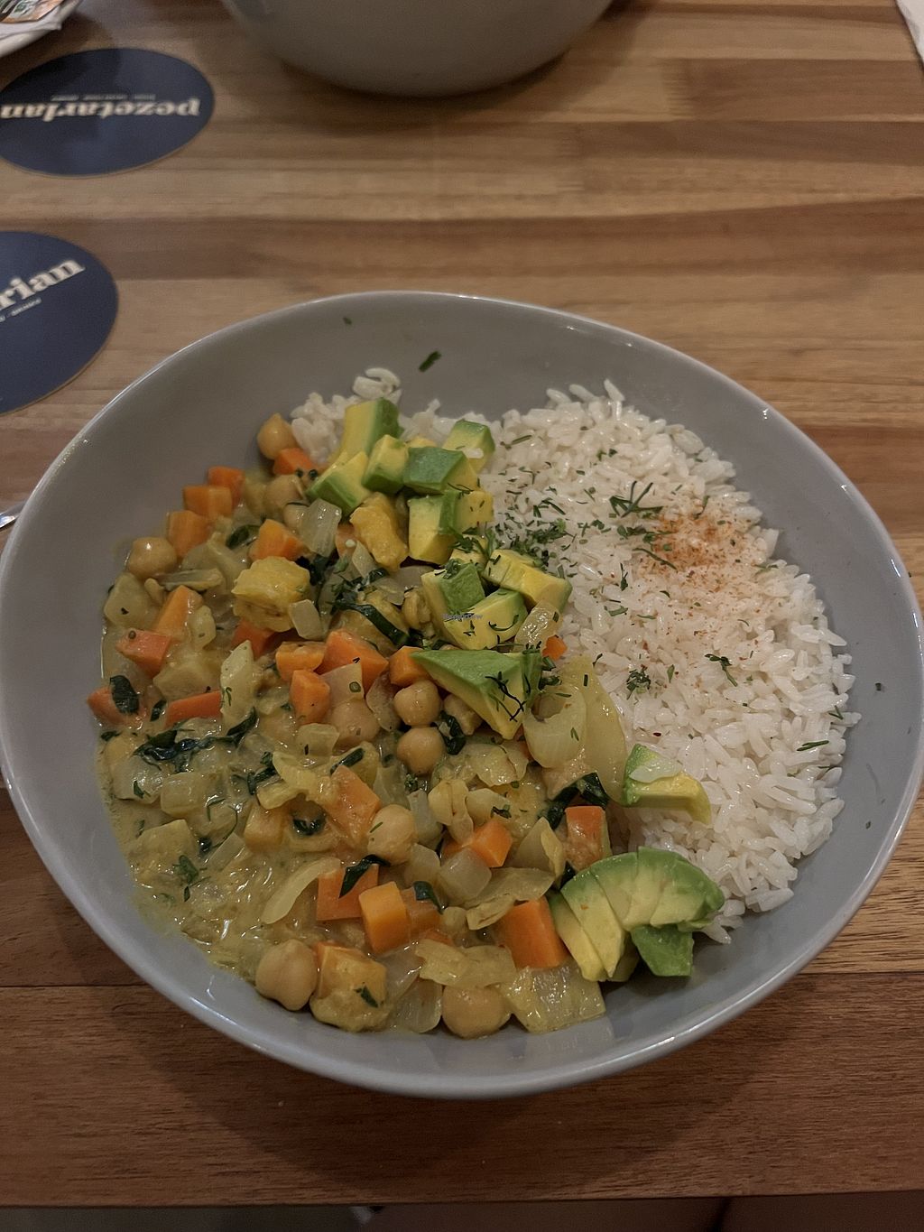 Read moreChickpea curry great depends on the chef but if you are lucky it is really good. Just wish there's quinoa instead of rice .