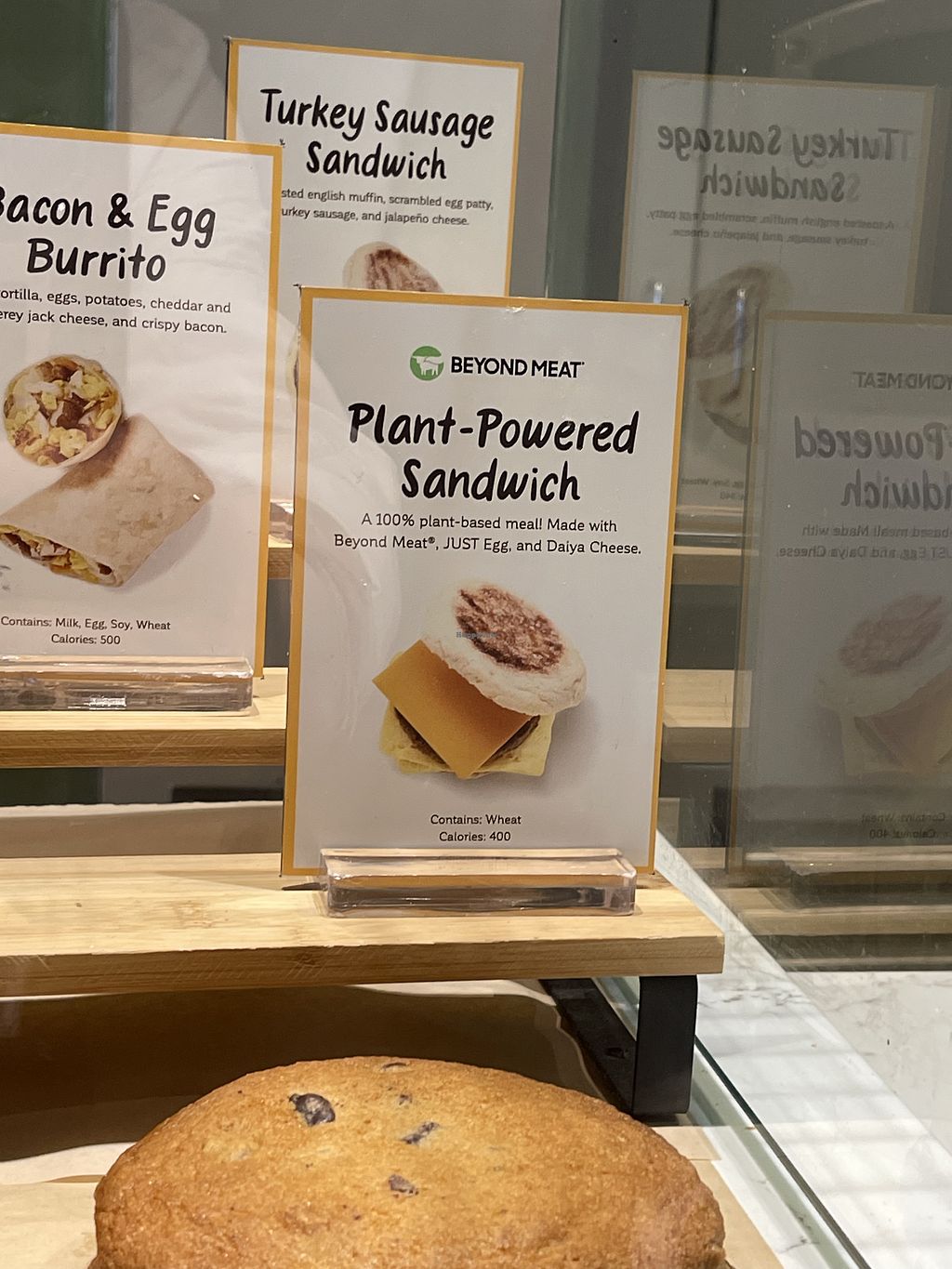 Got a tasty vegan breakfast sandwich so I’m sold! Had Justegg, a Beyond patty, and Daiya cheese. And they had a vegan donut too (didn’t try it), as well as a few plant based milk options.