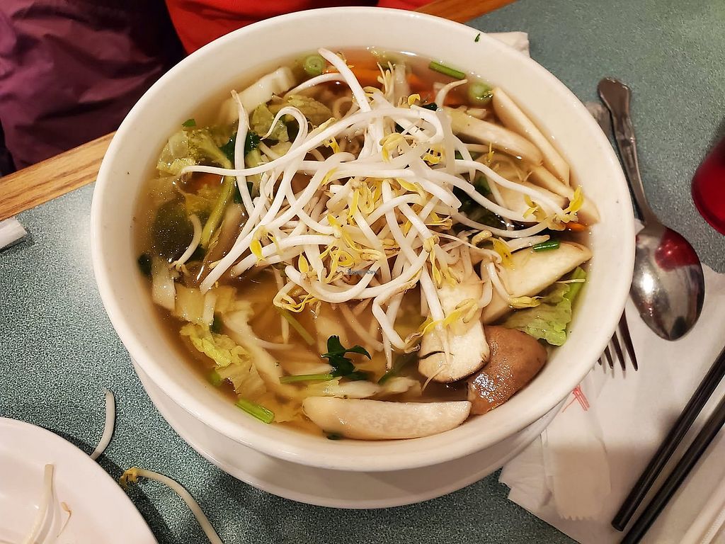 Excellent vegetarian broth. Plenty of vegetables and good garnishes. Absolutely a tret. While fmilt enjoyed it and couldn't stop eating it.