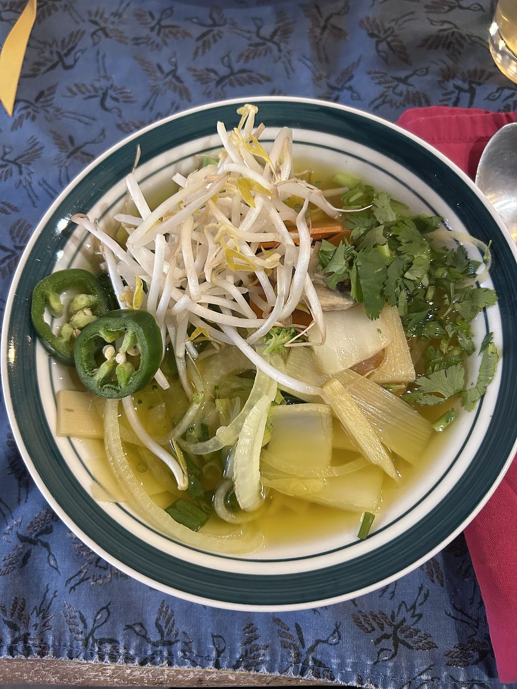I had several great experiences at Pho. The in-store menu lists vegetarian pho as an option and I ordered it without issue. It was delicious! A huge bowl of spiced broth, full of veggies, served with piles of fresh jalapenos, mint, basil, and bean sprouts! Wow! I was hooked.