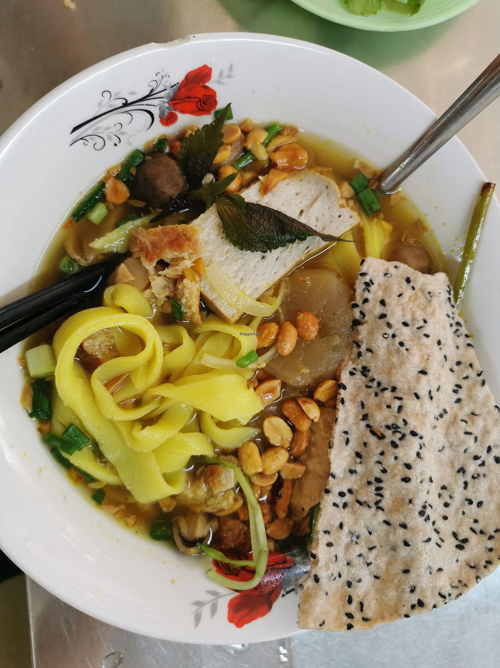 I ordered the Mì Quãng, the one that comes with sesame seed cracker and yellow noodles.