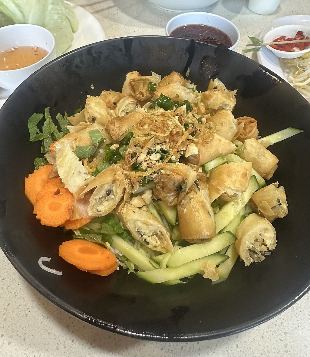 Asian Vietnamese Non-veg Serves meat, vegan options available. Vietnamese restaurant offering vegan dishes such as vermicelli bowls, rice paper rolls, and spring rolls. Open Mon-Wed 9:00am-8:30pm, Thu 9:00am-8:30am, Fri-Sun 9:00am-8:30pm. Closed Wed. More