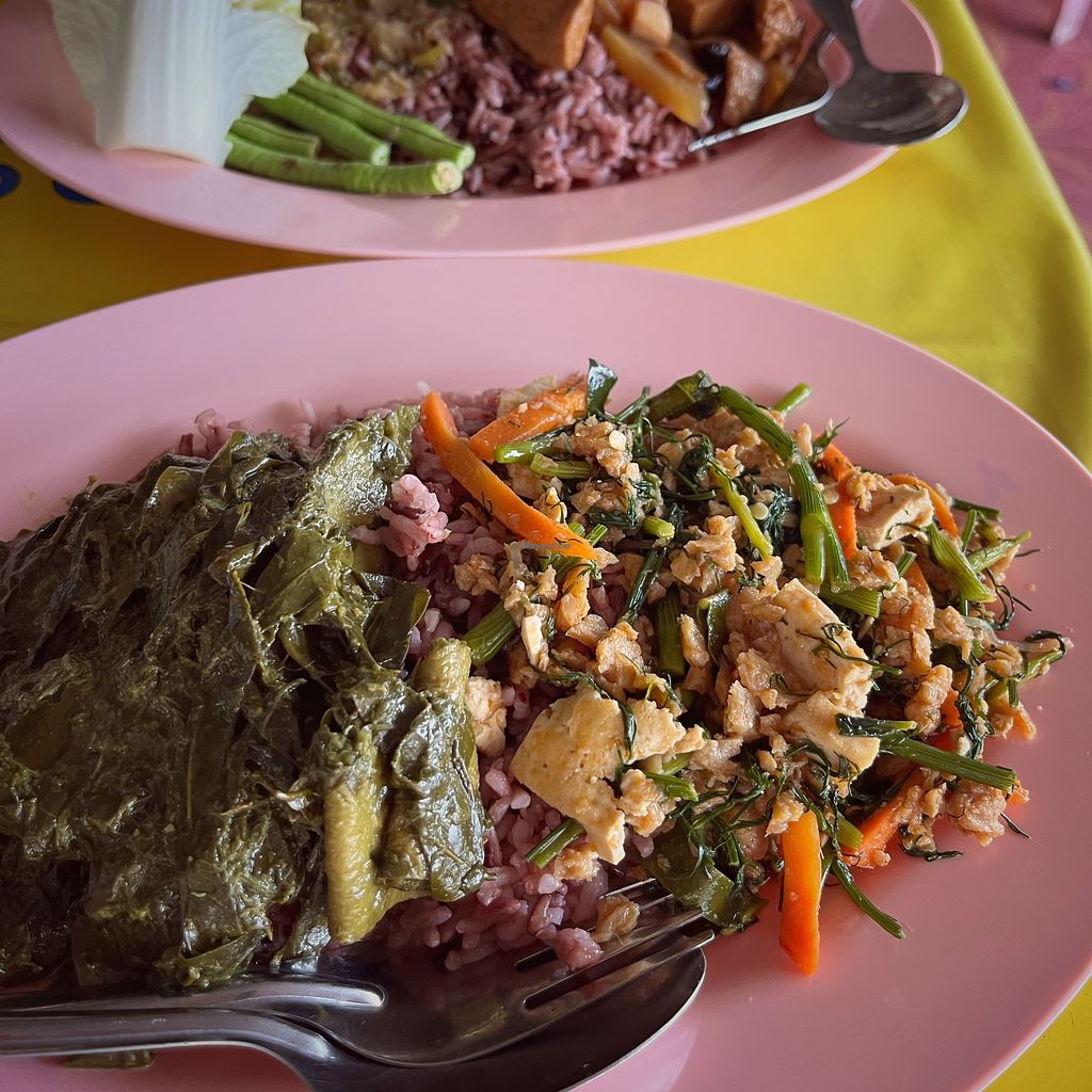 Purple rice with 2 toppings from ALL VEGAN buffet selection (total 35 …