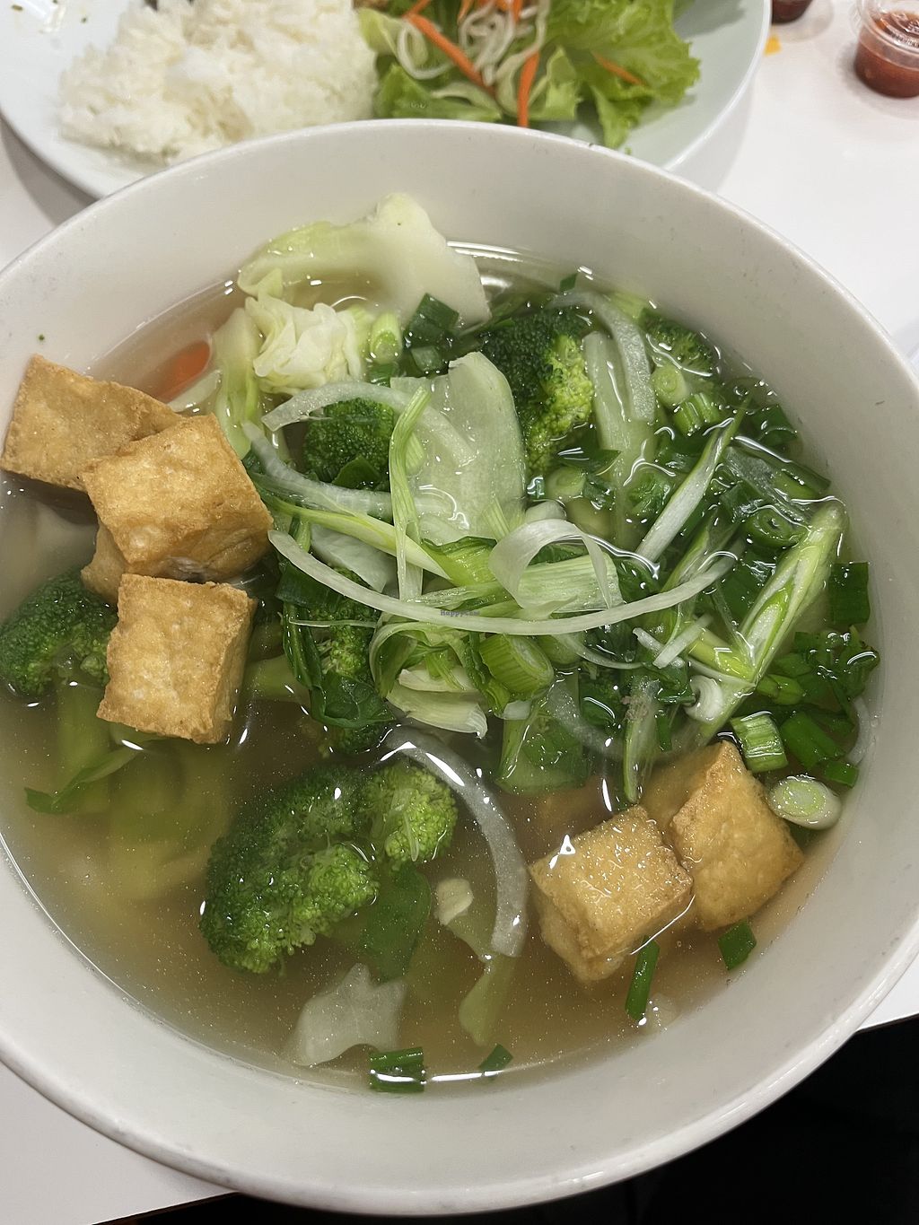 Once in a while I enjoy a warm bowl of broth and this one was amazing. I asked for the P17 vegetables and fried tofu with veggies broth and vermicelli noodles (I had to specify that want the vegan version because they offer beef or chicken broth as well) All vegetables (broccoli, carrot, zucchini, onions, green onions, bean sprouts, pepper, basil, cilantro) were fresh and right on point, the tofu was well pressed and seasoned but still tender inside, the broth was warm and light, everything has good flavor overall.