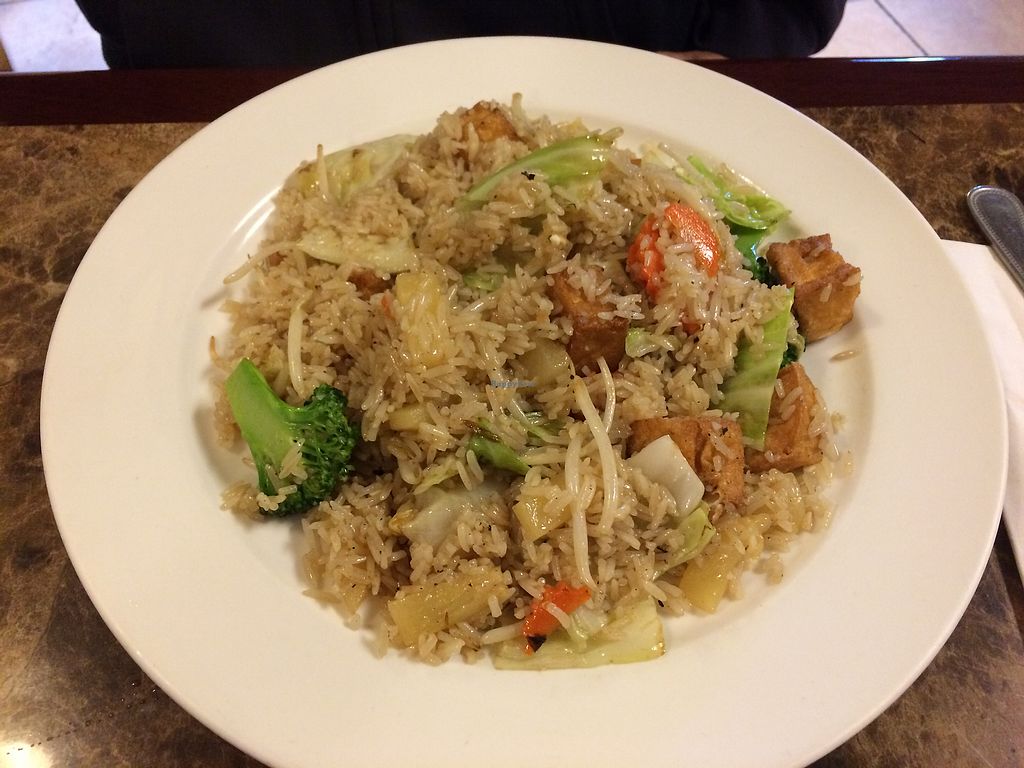 Serves meat, vegan options available. Vietnamese cuisine. Has tofu and vegetable dishes as well vegetable broth for pho (noodle soup). Be sure to specify. Open Mon-Fri 10:30am-9:00pm, Sat-Sun 11:00am-8:00pm.