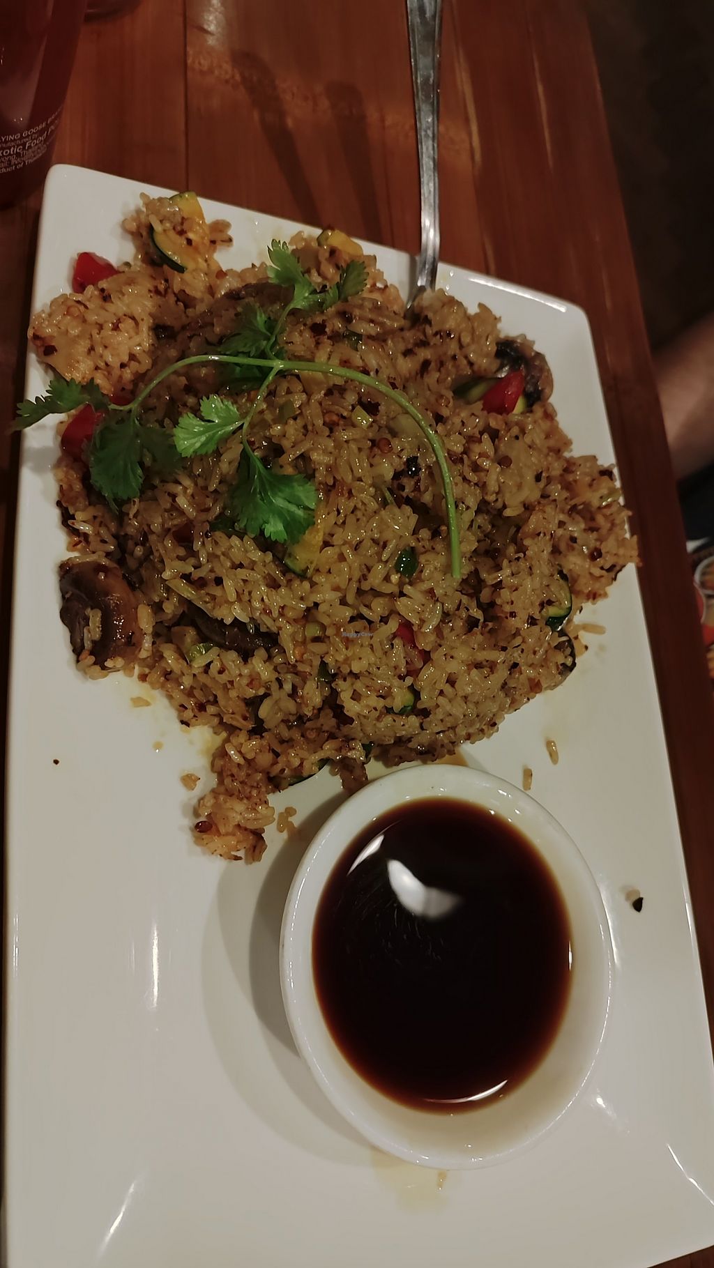 Hay dos opciones veganas para cada tipo de plato (sopa, curry, arroz...), son platos abundantes y muy sabrosos. El precio es el habitual por aquí y el staff es muy simpático.
