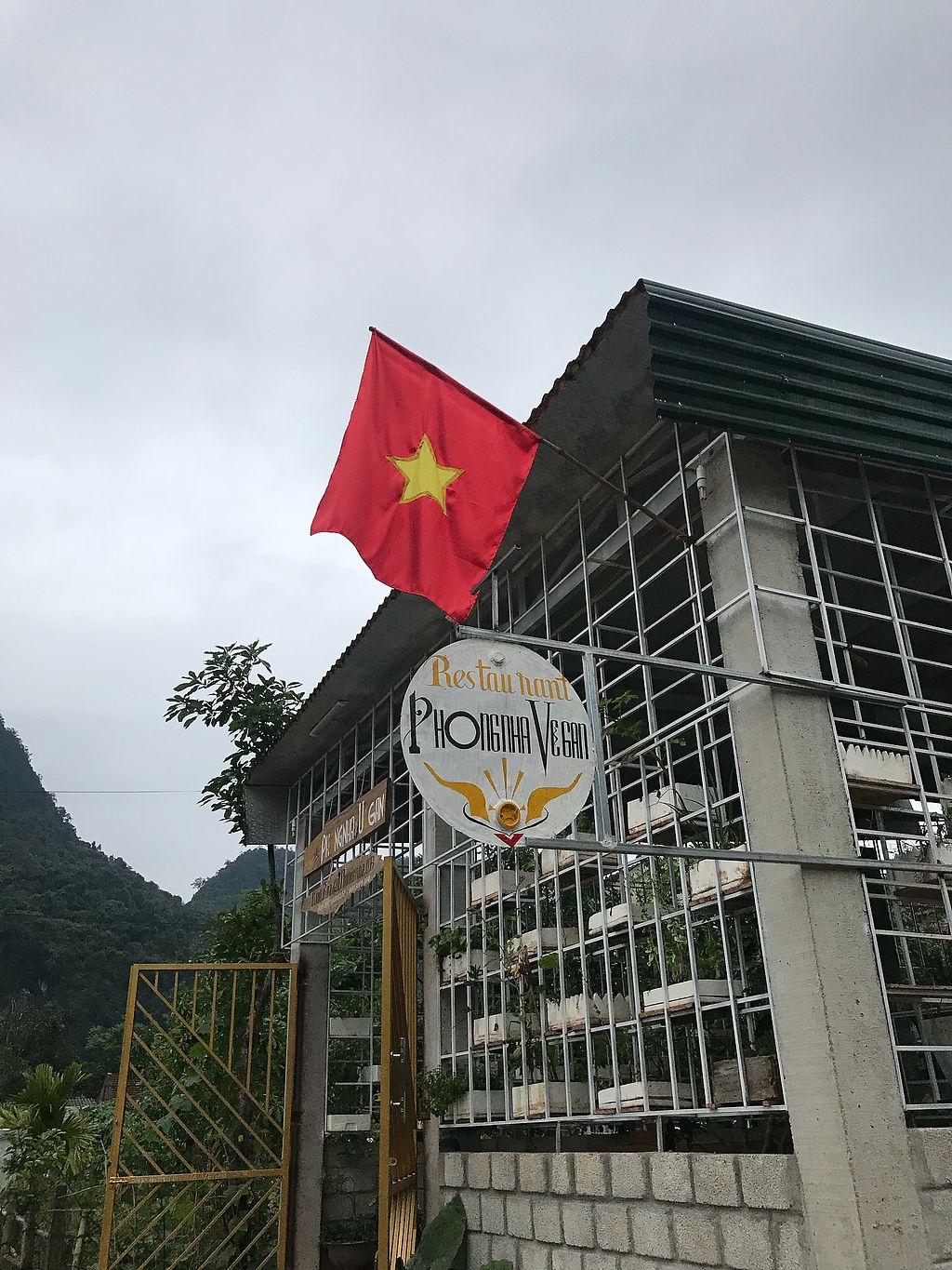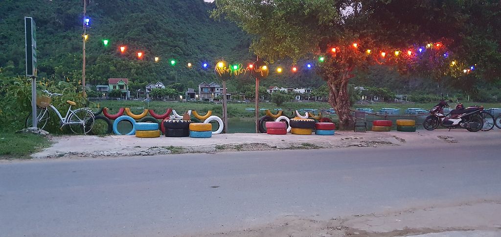 Quiet, small restaurant inside the owner's house. Uses some vegetables from the owner's garden. Makes Vietnamese cuisine including Phong Nha specialties. Example of dishes include banana flower tempura, rice pancakes with salad and seitan filling, soup noodle, and fried mushrooms. Planted pots filled with fresh herbs serve as decor. Reported to offer cow's milk June 2023. Open Mon-Sun 8:00am-9:00pm.