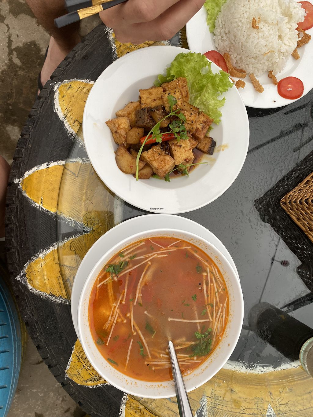 Very popular place that was busy when we got there. Staffing seemed a bit chaotic. They unfortunately forgot our order although were apologetic I about it, so the food took a very long time. The tomato tofu was one of the best we’ve had in Vietnam but the noodle soups were pretty bland.