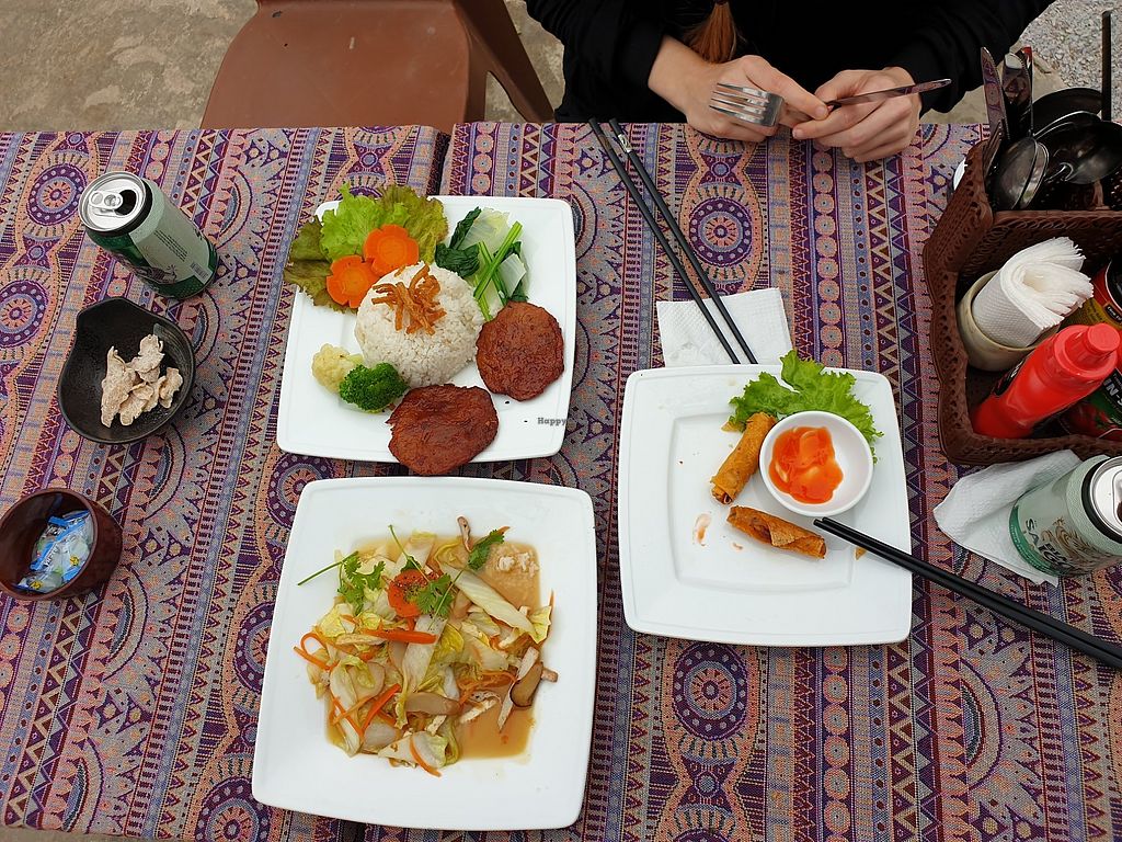 The food was tasty, I’m not really into meat replacements and some of them were just too ‘meaty’ for me which I personally find off putting. The drinks we just asked for non dairy milk and they were happy to use coconut/soy as a replacement. It does stipulate in the menu 100% plant based so as a very lactose intolerant family we’d have been unwell if previous reviews hadn’t have alerted us to the use of dairy in the shakes, this maybe needs addressed on the menu. There is not a great deal of choice in phong nha for vegan/veggie food but he’s definitely worth checking out!
